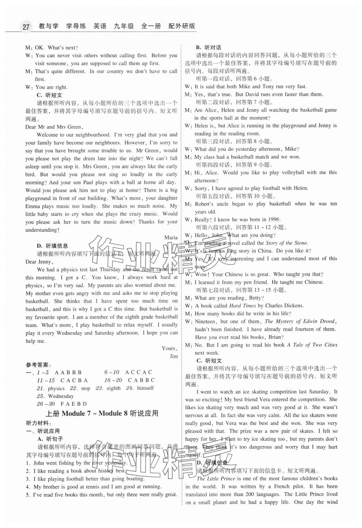 注:目前有些书本章节名称可能整理的还不是很完善,但都是按照顺序排列的,请同学们按照顺序仔细查找。练习册 2025年教与学学导练九年级英语全一册外研版 答案主要是用来给同学们做完题方便对答案用的,请勿直接抄袭。