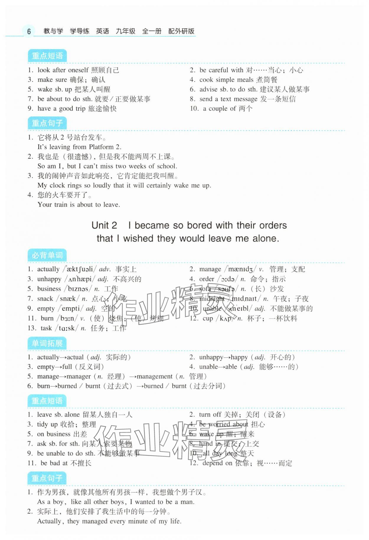 注:目前有些书本章节名称可能整理的还不是很完善,但都是按照顺序排列的,请同学们按照顺序仔细查找。练习册 2025年教与学学导练九年级英语全一册外研版 答案主要是用来给同学们做完题方便对答案用的,请勿直接抄袭。