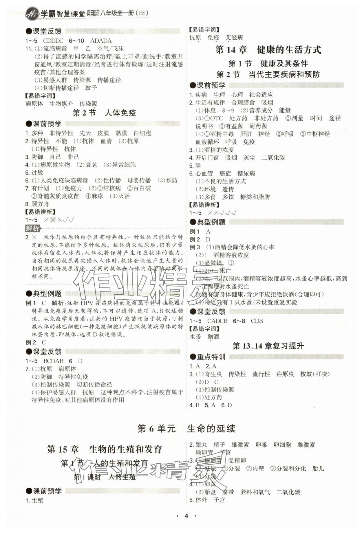 注:目前有些书本章节名称可能整理的还不是很完善,但都是按照顺序排列的,请同学们按照顺序仔细查找。练习册 2025年学霸智慧课堂八年级生物全一册北师大版 答案主要是用来给同学们做完题方便对答案用的,请勿直接抄袭。