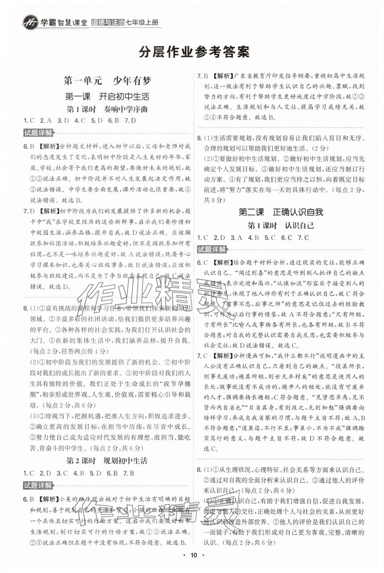 注:目前有些书本章节名称可能整理的还不是很完善,但都是按照顺序排列的,请同学们按照顺序仔细查找。练习册 2025年学霸智慧课堂七年级道德与法治上册人教版 答案主要是用来给同学们做完题方便对答案用的,请勿直接抄袭。