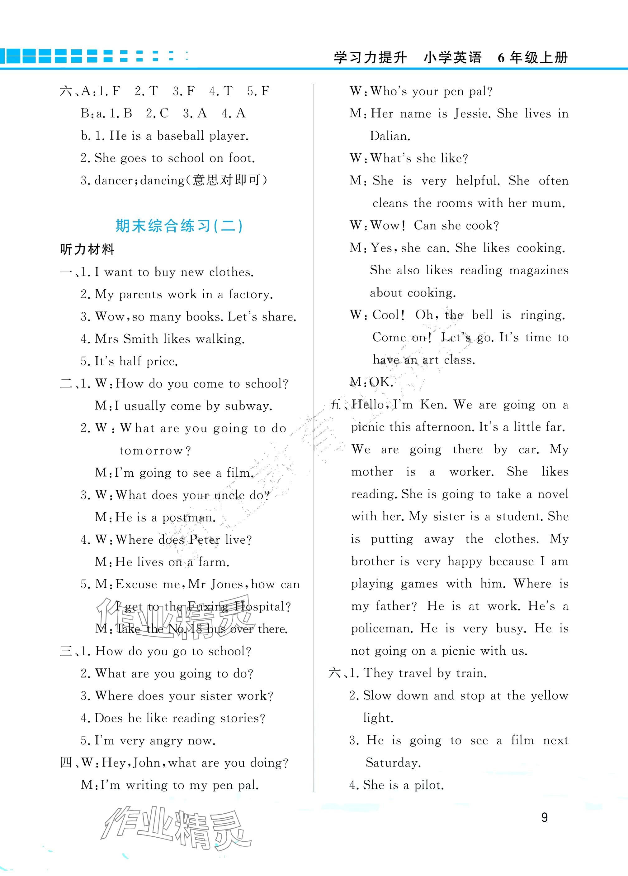 注:目前有些书本章节名称可能整理的还不是很完善,但都是按照顺序排列的,请同学们按照顺序仔细查找。练习册 2025年学习力提升六年级英语上册人教版 答案主要是用来给同学们做完题方便对答案用的,请勿直接抄袭。