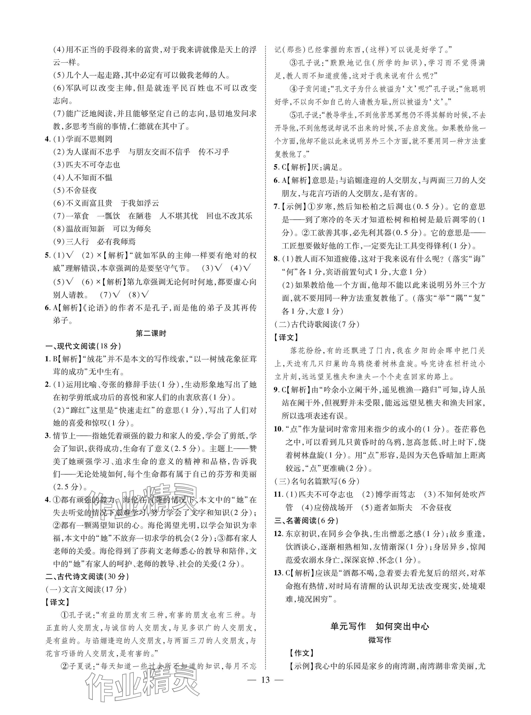 注:目前有些书本章节名称可能整理的还不是很完善,但都是按照顺序排列的,请同学们按照顺序仔细查找。练习册 2025年学典四川七年级语文上册人教版 答案主要是用来给同学们做完题方便对答案用的,请勿直接抄袭。