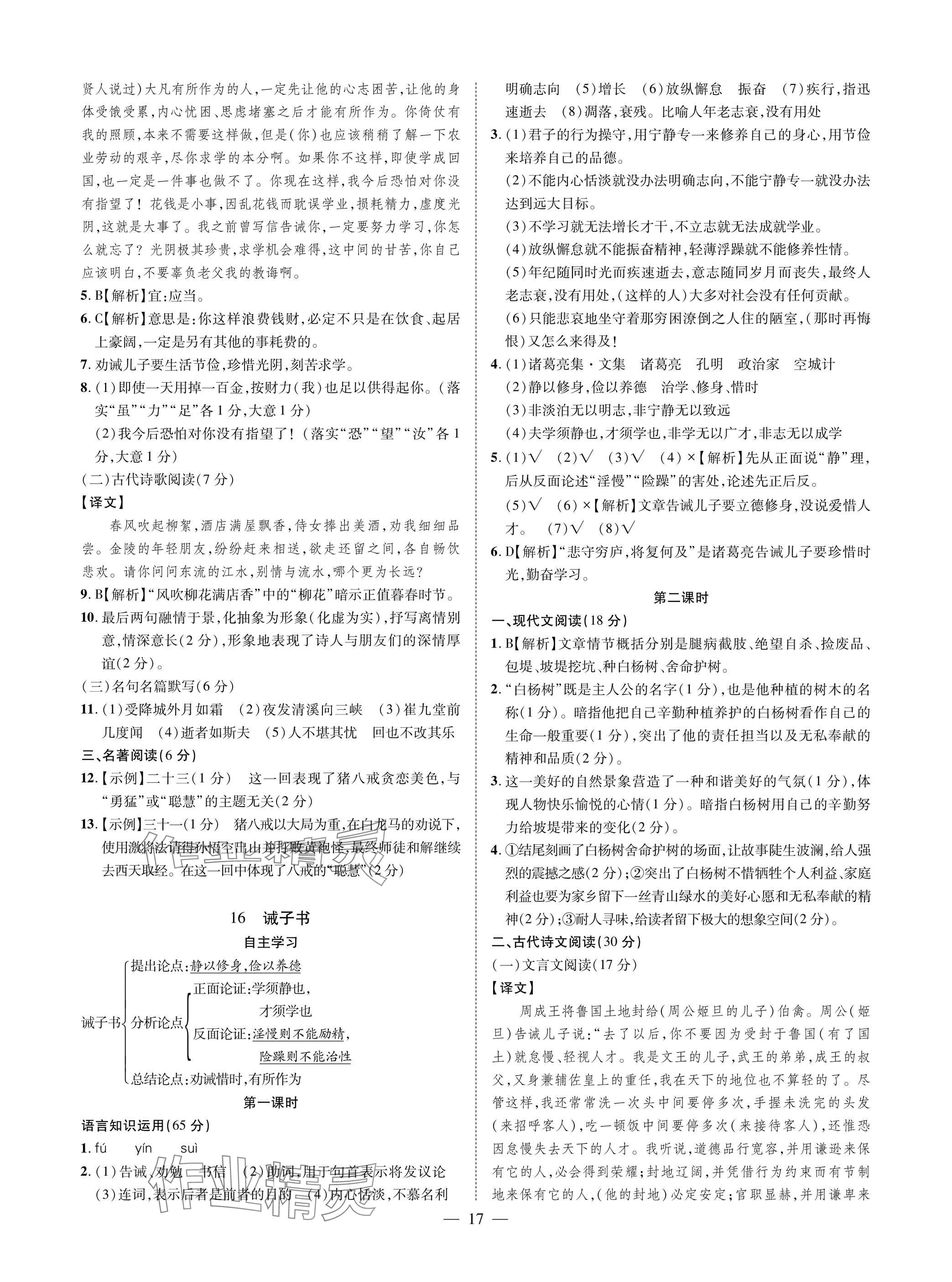 注:目前有些书本章节名称可能整理的还不是很完善,但都是按照顺序排列的,请同学们按照顺序仔细查找。练习册 2025年学典四川七年级语文上册人教版 答案主要是用来给同学们做完题方便对答案用的,请勿直接抄袭。