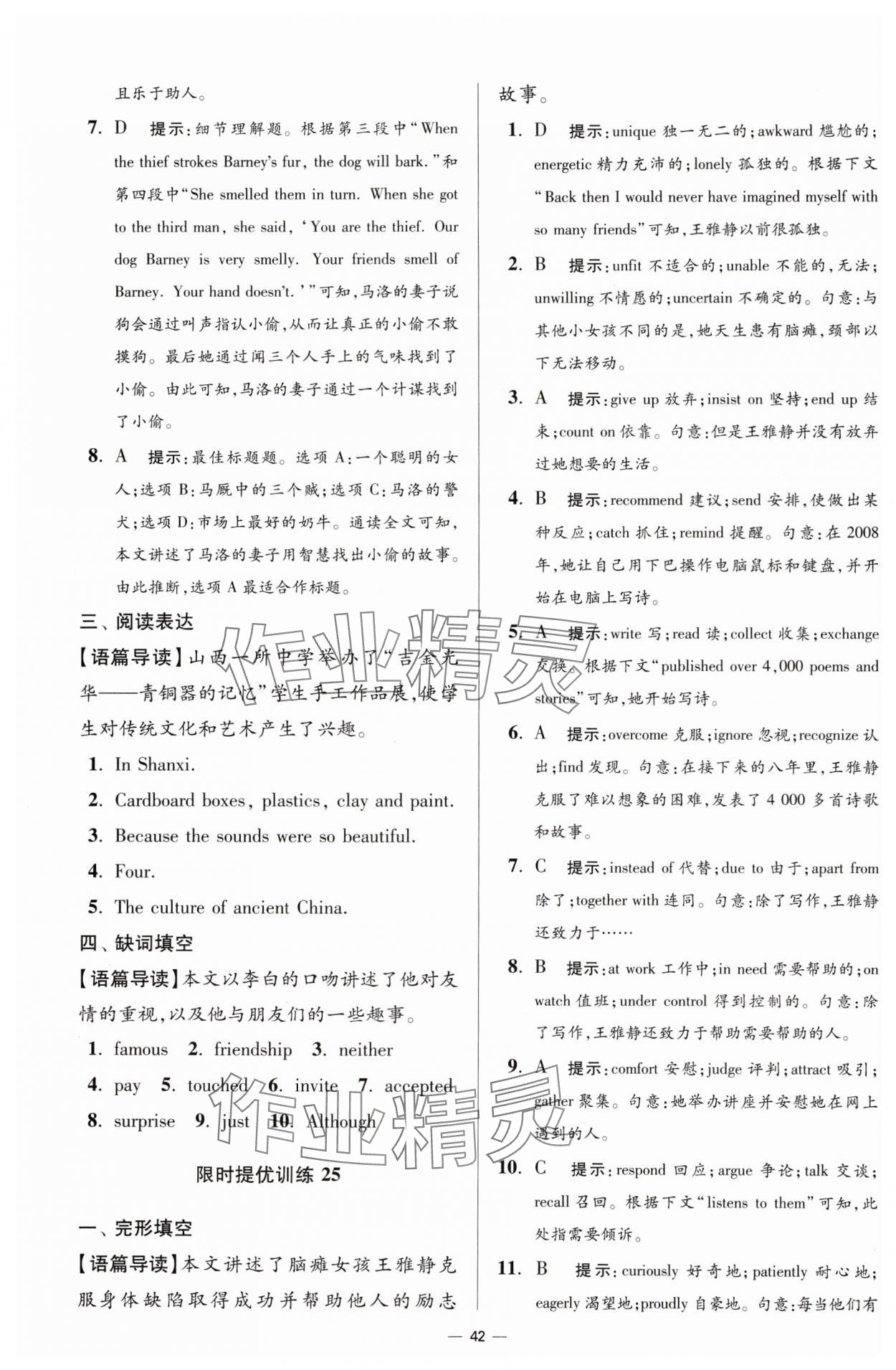 注:目前有些书本章节名称可能整理的还不是很完善,但都是按照顺序排列的,请同学们按照顺序仔细查找。练习册 2025年赢在阅读英语限时提优训练九年级+中考创新版 答案主要是用来给同学们做完题方便对答案用的,请勿直接抄袭。