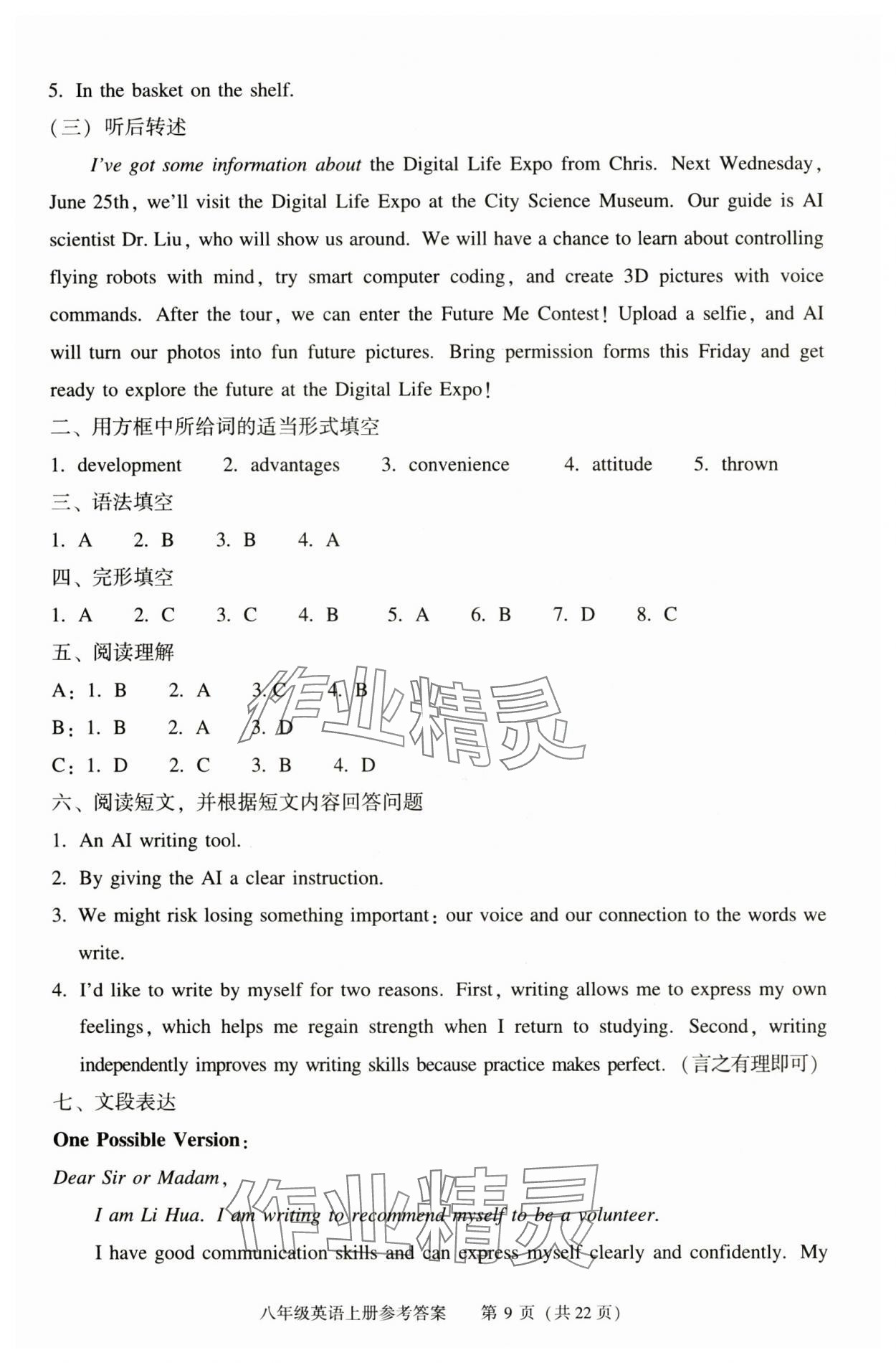 注:目前有些书本章节名称可能整理的还不是很完善,但都是按照顺序排列的,请同学们按照顺序仔细查找。练习册 2025年学习探究诊断八年级英语上册 答案主要是用来给同学们做完题方便对答案用的,请勿直接抄袭。