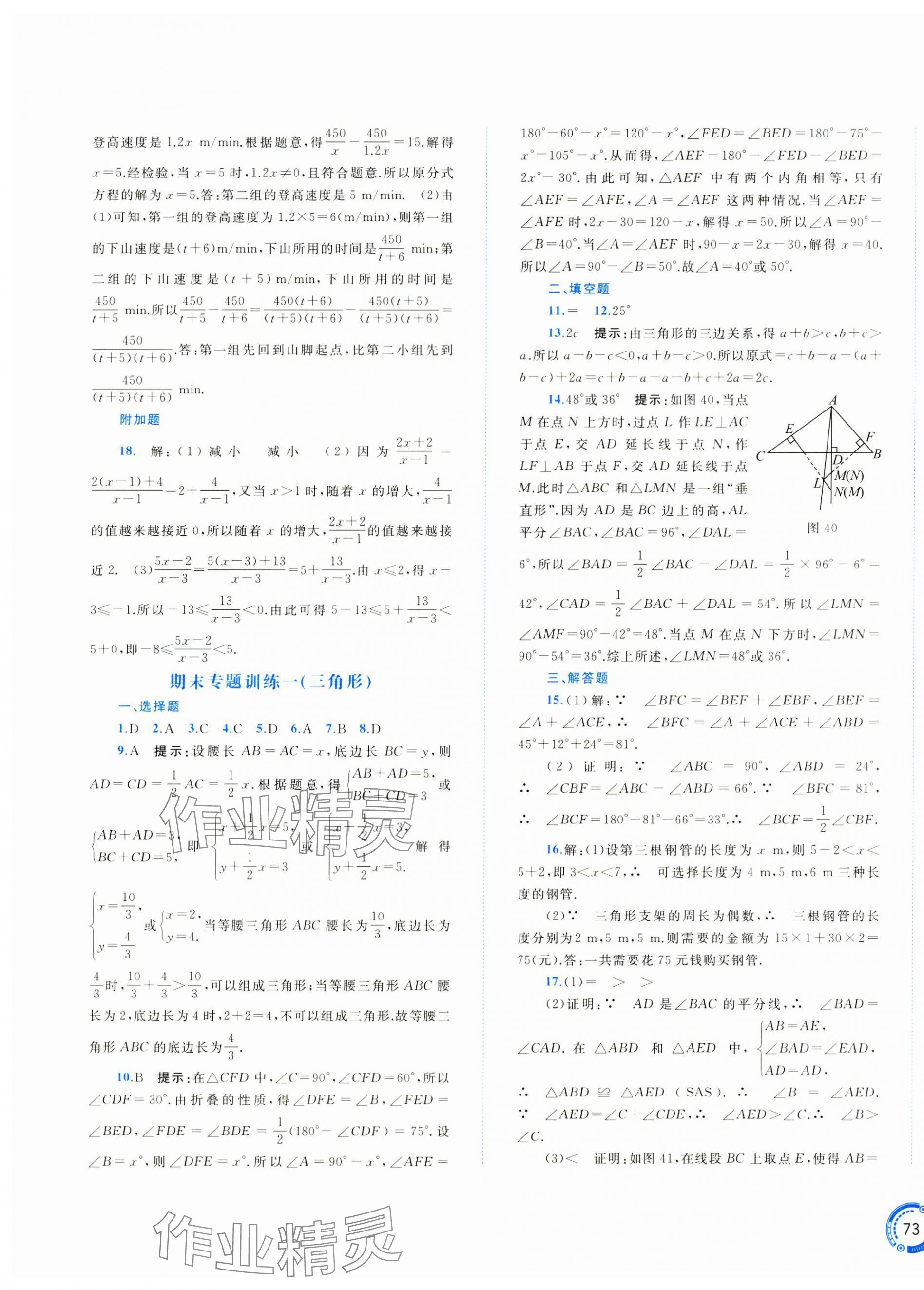 注:目前有些书本章节名称可能整理的还不是很完善,但都是按照顺序排列的,请同学们按照顺序仔细查找。练习册 2025年新课程学习与测评单元双测八年级数学上册人教版 答案主要是用来给同学们做完题方便对答案用的,请勿直接抄袭。