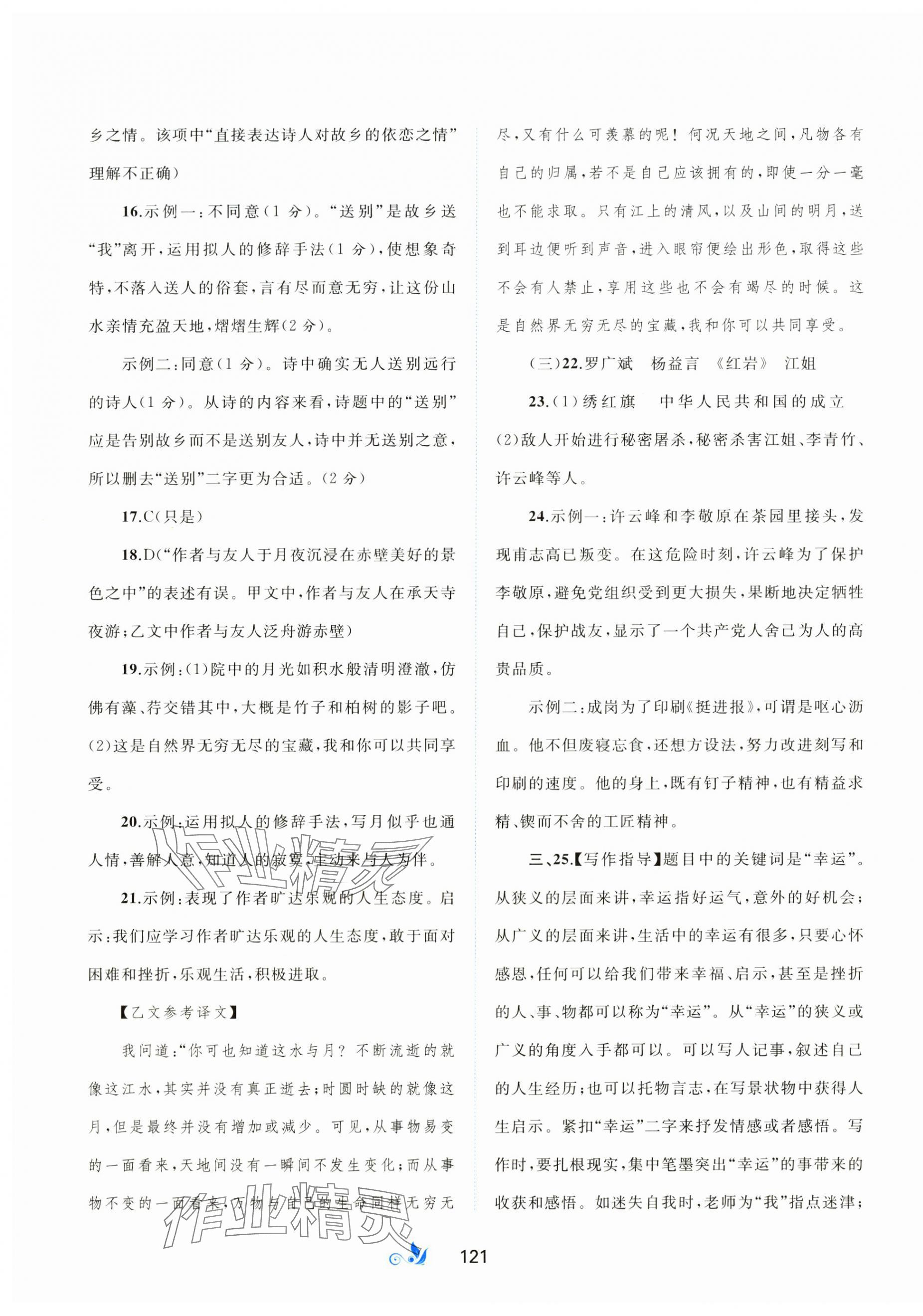 注:目前有些书本章节名称可能整理的还不是很完善,但都是按照顺序排列的,请同学们按照顺序仔细查找。练习册 2025年新课程学习与测评单元双测八年级语文上册人教版 答案主要是用来给同学们做完题方便对答案用的,请勿直接抄袭。