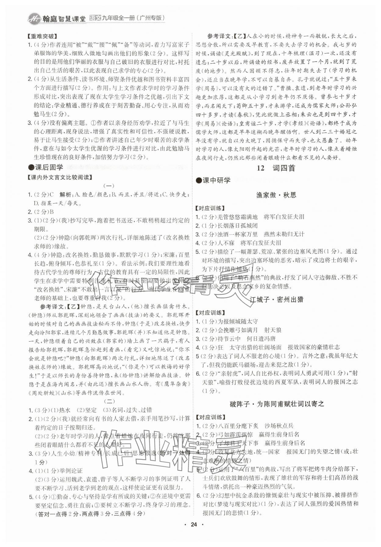 2025年学霸智慧课堂九年级语文全一册人教版广州专版