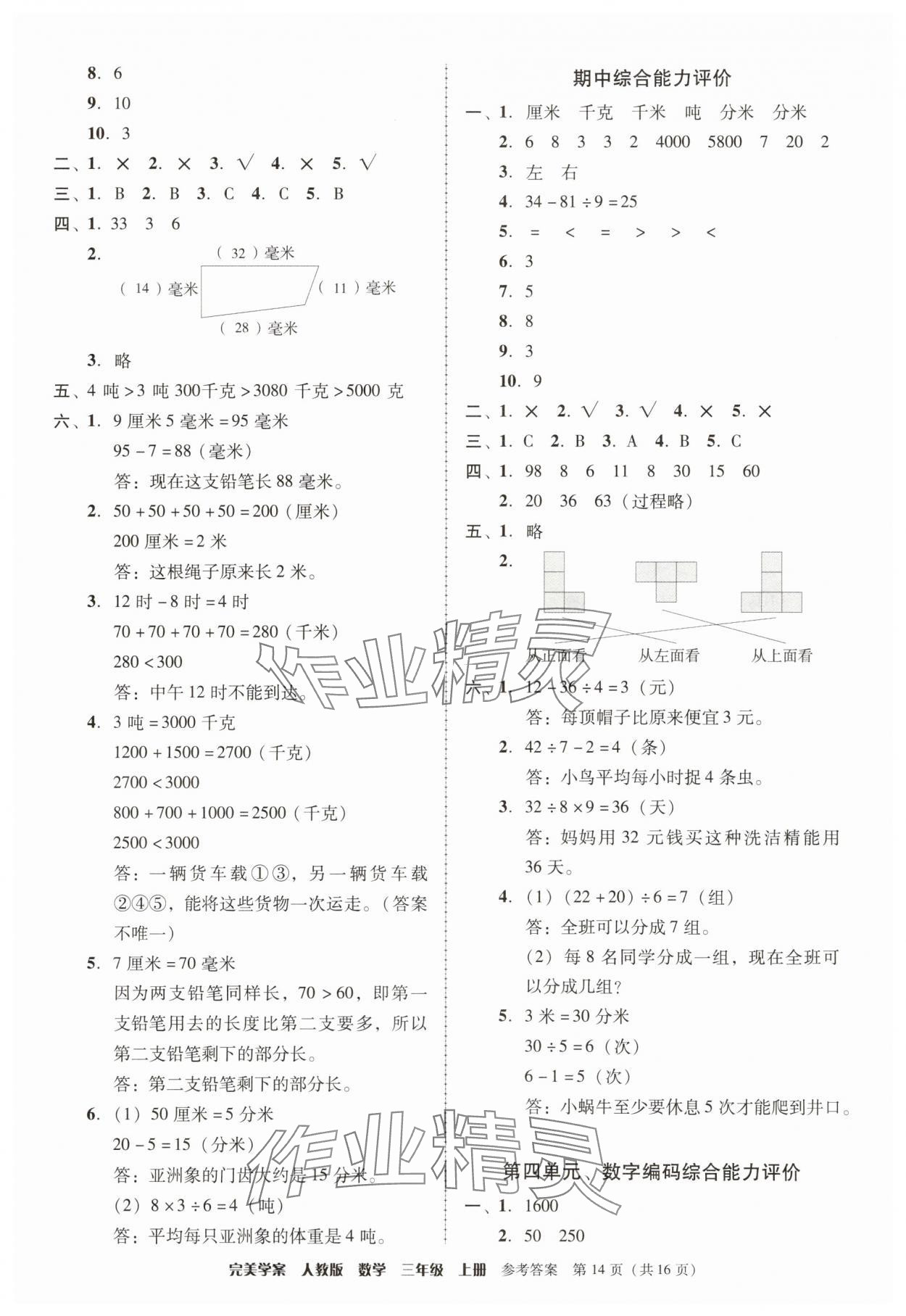 注:目前有些书本章节名称可能整理的还不是很完善,但都是按照顺序排列的,请同学们按照顺序仔细查找。练习册 2025年完美学案三年级数学上册人教版 答案主要是用来给同学们做完题方便对答案用的,请勿直接抄袭。