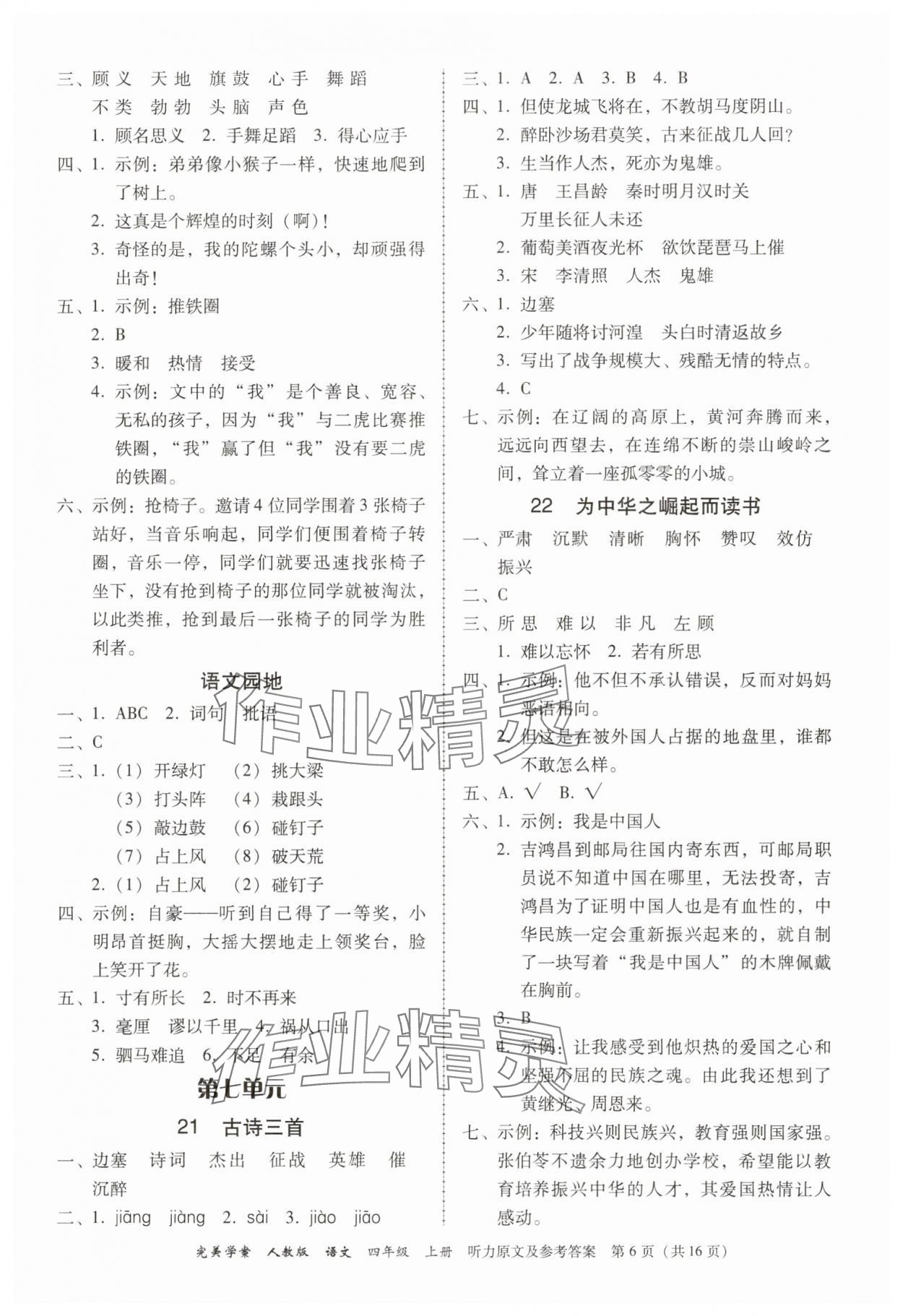 注:目前有些书本章节名称可能整理的还不是很完善,但都是按照顺序排列的,请同学们按照顺序仔细查找。练习册 2025年完美学案四年级语文上册人教版 答案主要是用来给同学们做完题方便对答案用的,请勿直接抄袭。