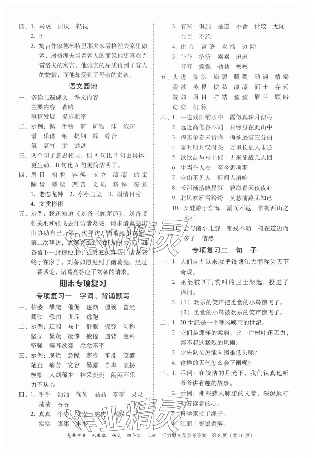 注:目前有些书本章节名称可能整理的还不是很完善,但都是按照顺序排列的,请同学们按照顺序仔细查找。练习册 2025年完美学案四年级语文上册人教版 答案主要是用来给同学们做完题方便对答案用的,请勿直接抄袭。
