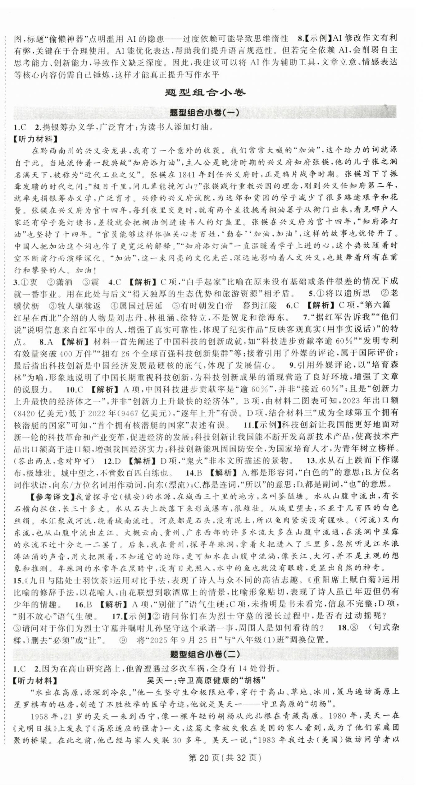 注:目前有些书本章节名称可能整理的还不是很完善,但都是按照顺序排列的,请同学们按照顺序仔细查找。练习册 2025年状元成才路创优作业八年级语文上册人教版贵州专版 答案主要是用来给同学们做完题方便对答案用的,请勿直接抄袭。