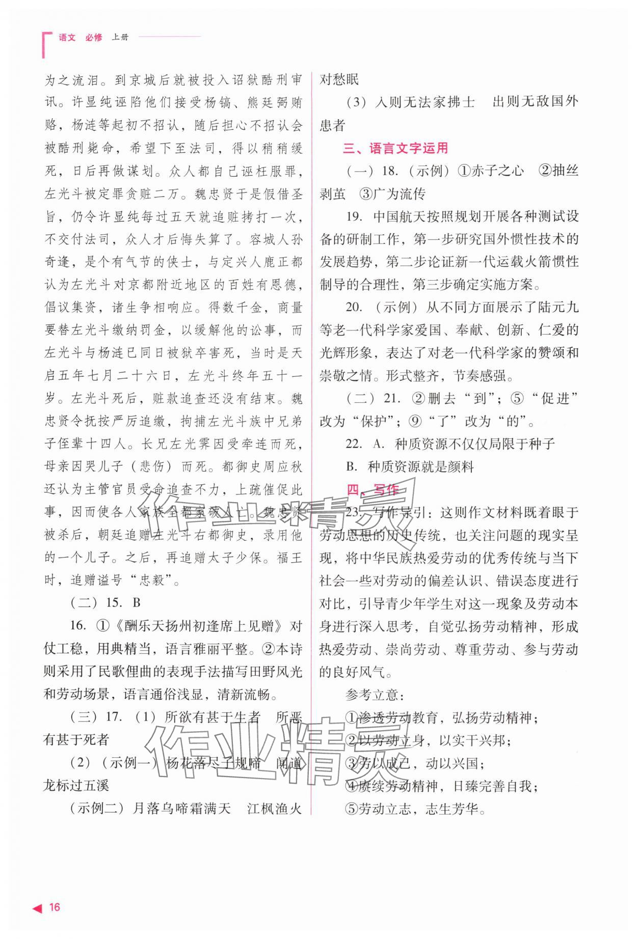 注:目前有些书本章节名称可能整理的还不是很完善,但都是按照顺序排列的,请同学们按照顺序仔细查找。练习册 2025年普通高中新课程同步练习册高中语文必修上册人教版 答案主要是用来给同学们做完题方便对答案用的,请勿直接抄袭。