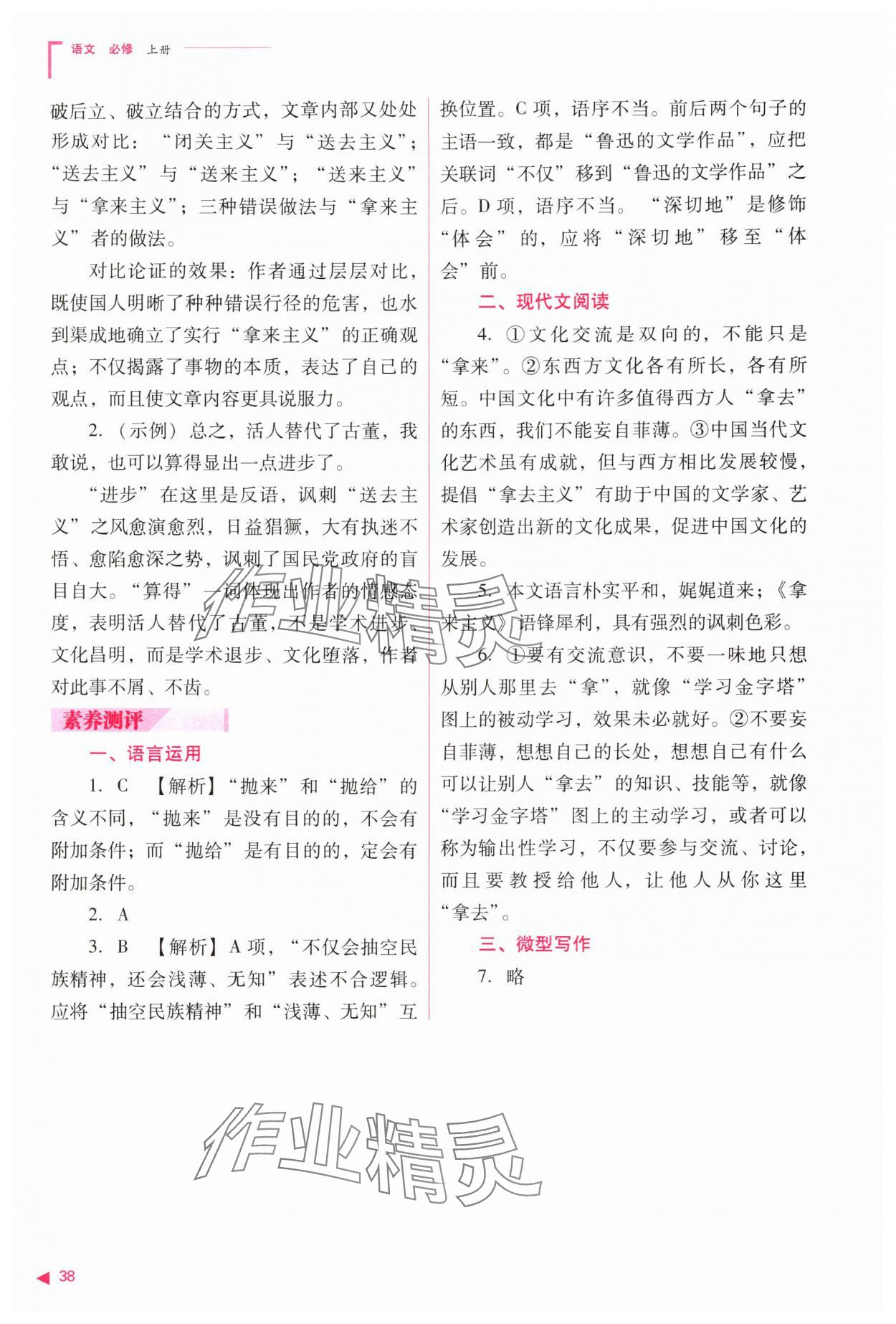 注:目前有些书本章节名称可能整理的还不是很完善,但都是按照顺序排列的,请同学们按照顺序仔细查找。练习册 2025年普通高中新课程同步练习册高中语文必修上册人教版 答案主要是用来给同学们做完题方便对答案用的,请勿直接抄袭。