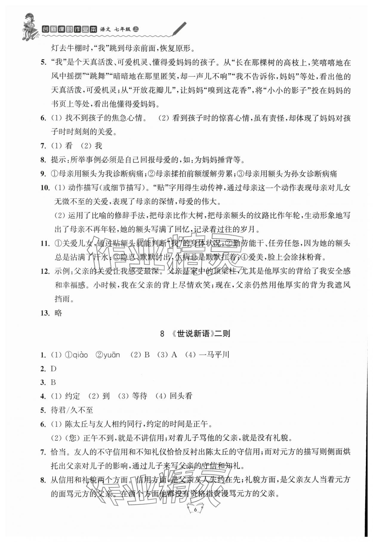 2025年创新课时作业本江苏凤凰少年儿童出版社七年级语文上册人教版 参考答案第6页