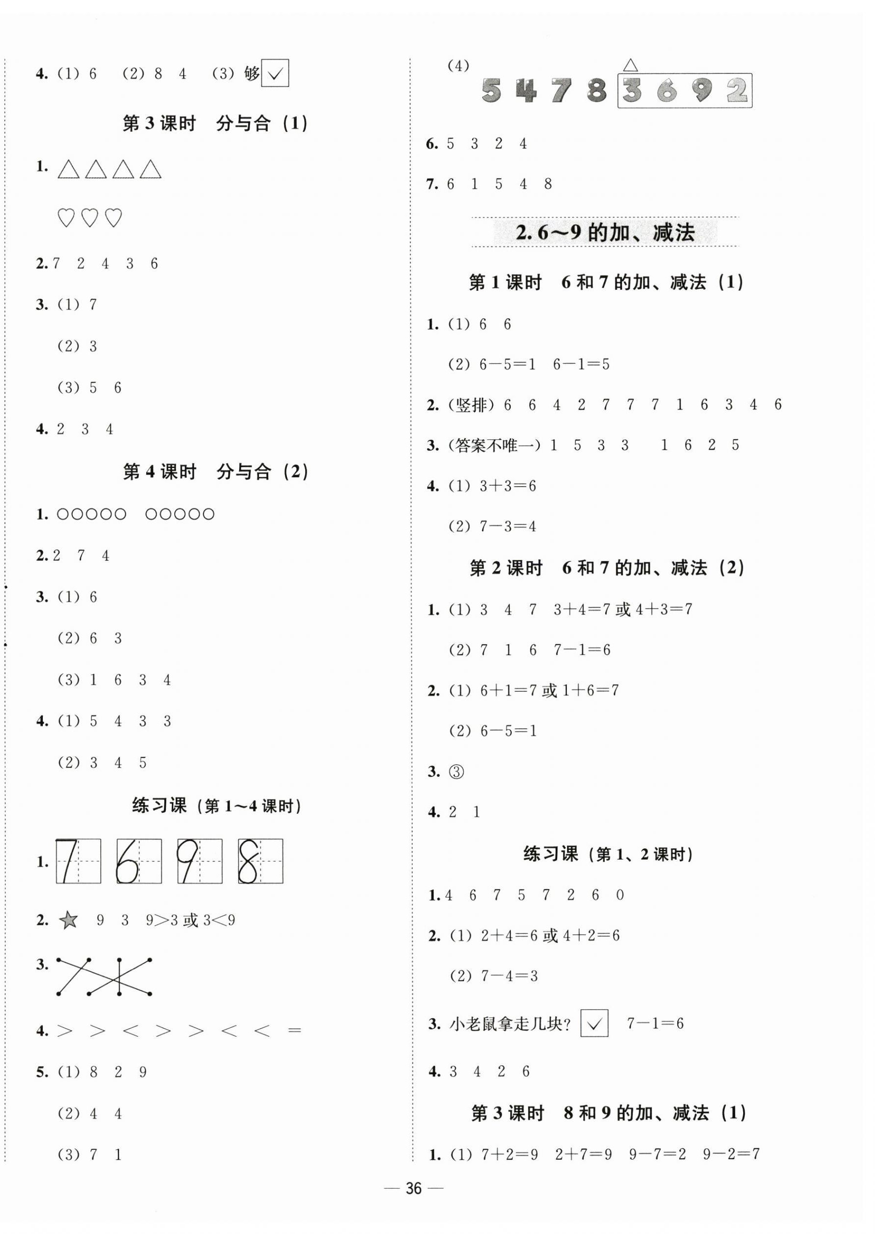 精英家教网> 2025年新课标同步学练测一年级数学上册人教版 > 第4页 参考答案