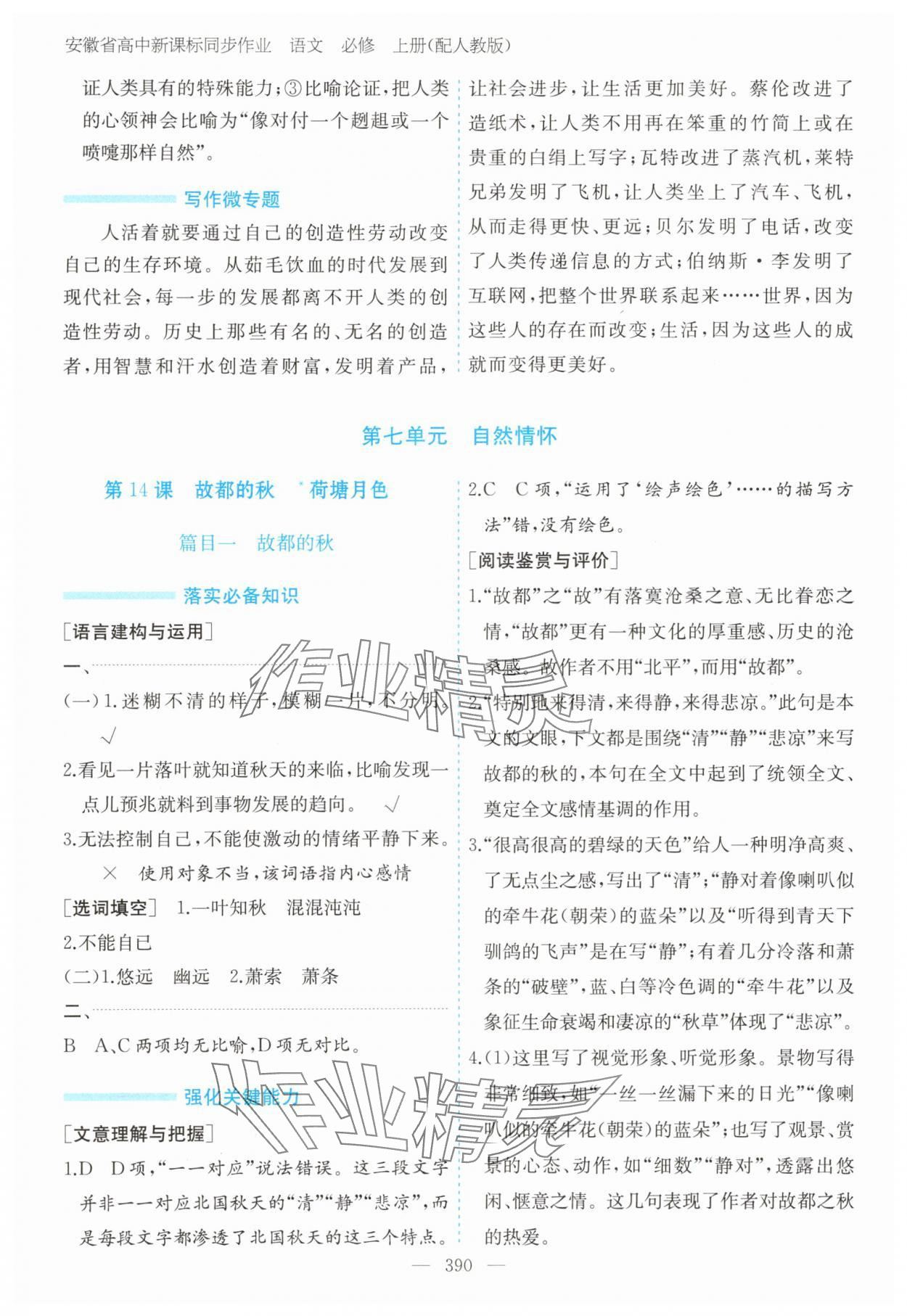 注:目前有些书本章节名称可能整理的还不是很完善,但都是按照顺序排列的,请同学们按照顺序仔细查找。练习册 2025年高中新课标同步作业黄山书社高中语文必修上册人教版安徽专版 答案主要是用来给同学们做完题方便对答案用的,请勿直接抄袭。