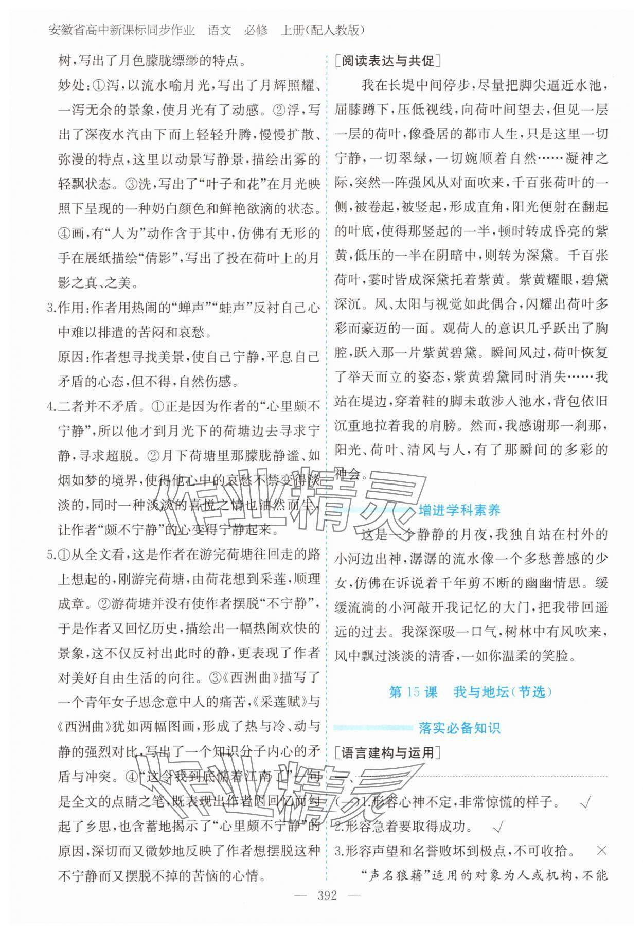 注:目前有些书本章节名称可能整理的还不是很完善,但都是按照顺序排列的,请同学们按照顺序仔细查找。练习册 2025年高中新课标同步作业黄山书社高中语文必修上册人教版安徽专版 答案主要是用来给同学们做完题方便对答案用的,请勿直接抄袭。