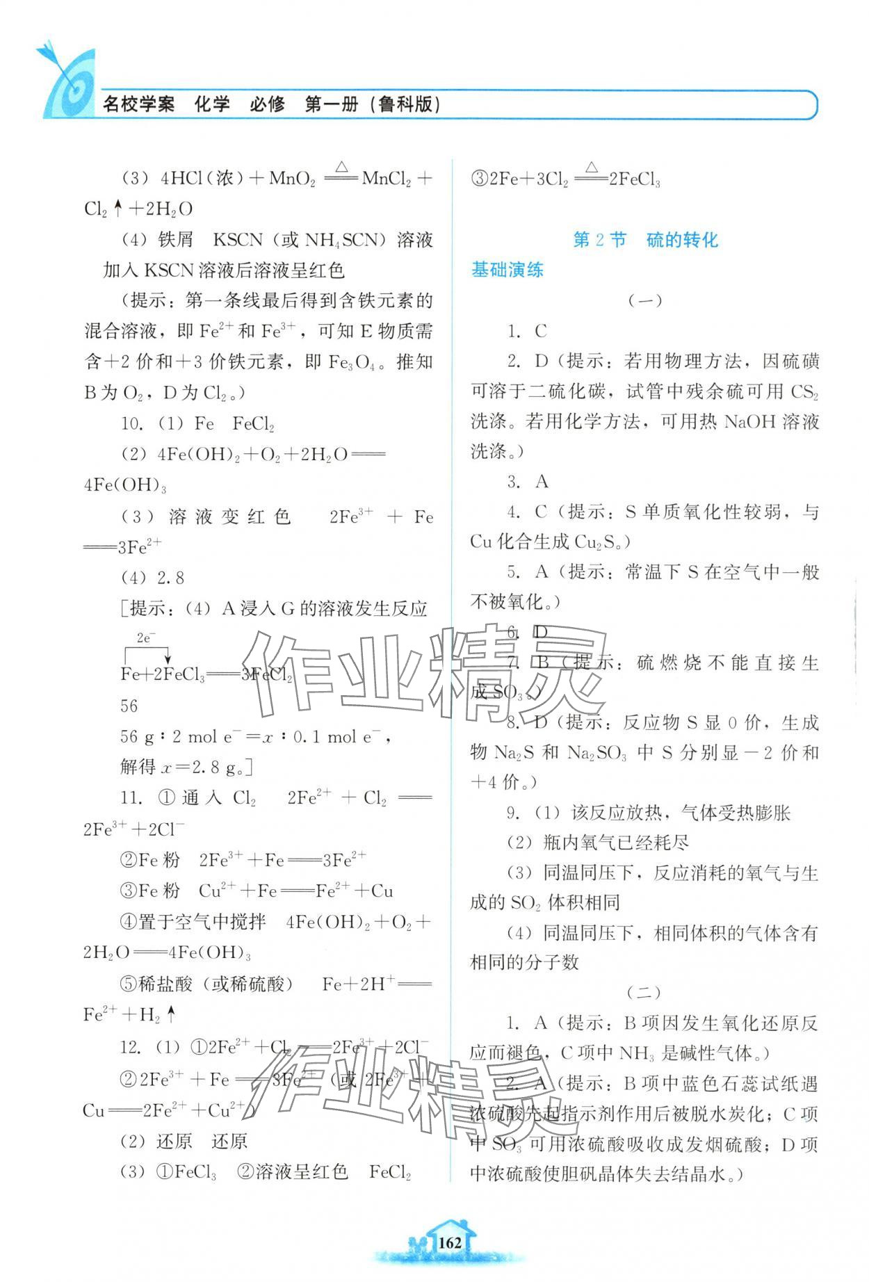 注:目前有些书本章节名称可能整理的还不是很完善,但都是按照顺序排列的,请同学们按照顺序仔细查找。练习册 2025年名校学案高中化学必修第一册鲁科版 答案主要是用来给同学们做完题方便对答案用的,请勿直接抄袭。