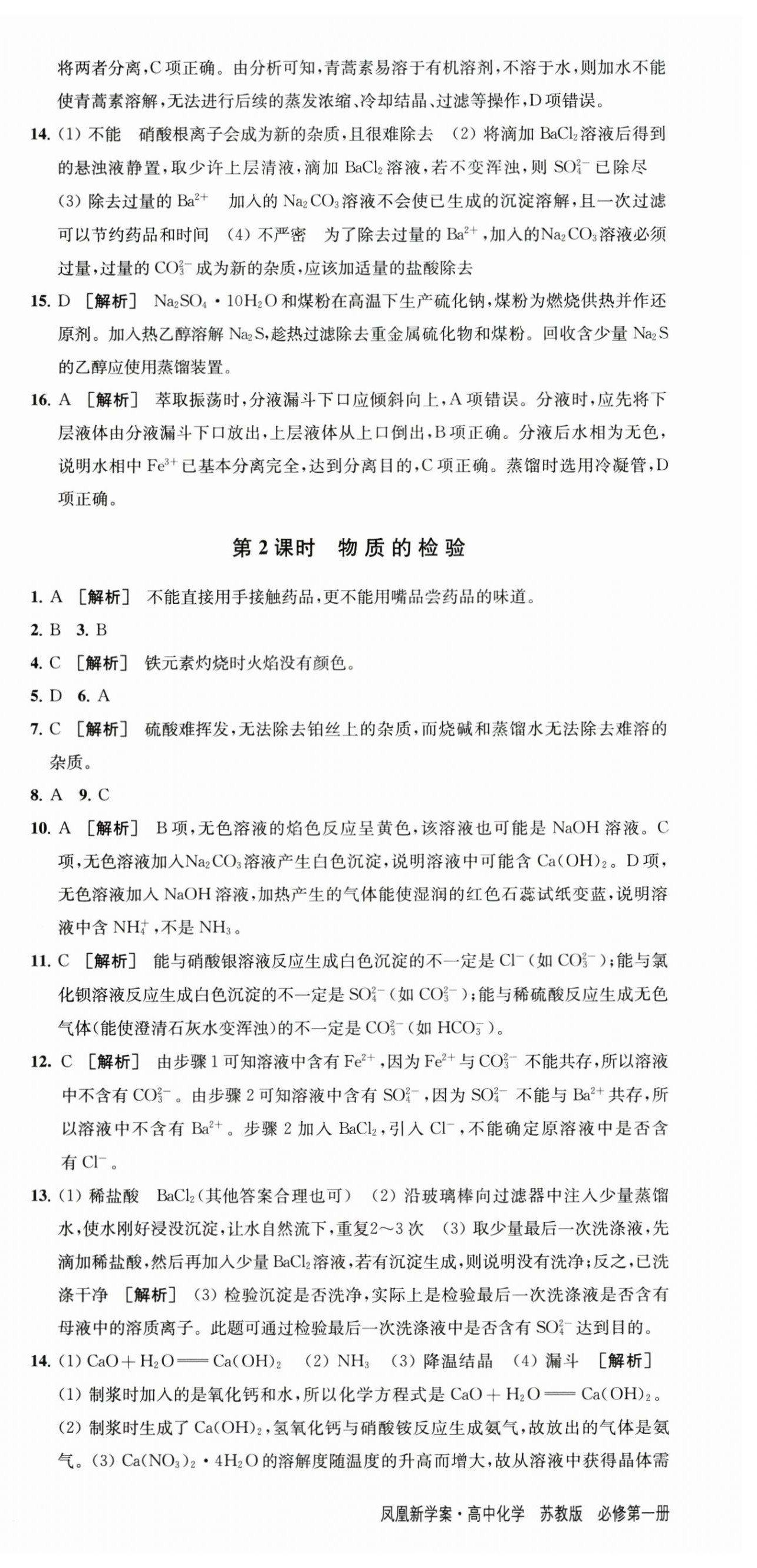 注:目前有些书本章节名称可能整理的还不是很完善,但都是按照顺序排列的,请同学们按照顺序仔细查找。练习册 2025年凤凰新学案高中化学必修第一册苏教版 答案主要是用来给同学们做完题方便对答案用的,请勿直接抄袭。