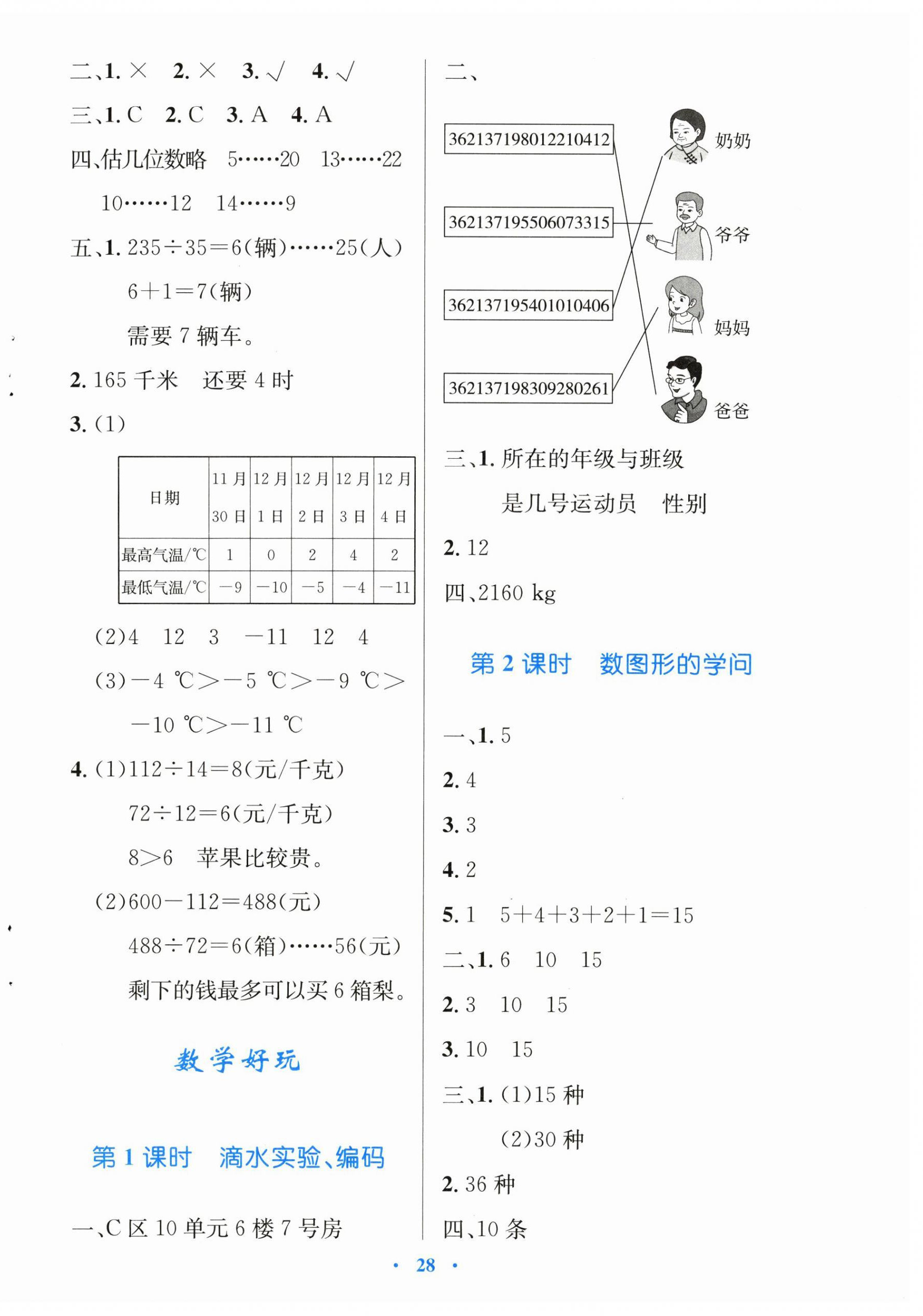 注:目前有些书本章节名称可能整理的还不是很完善,但都是按照顺序排列的,请同学们按照顺序仔细查找。练习册 2025年同步测控优化设计四年级数学上册北师大版 答案主要是用来给同学们做完题方便对答案用的,请勿直接抄袭。