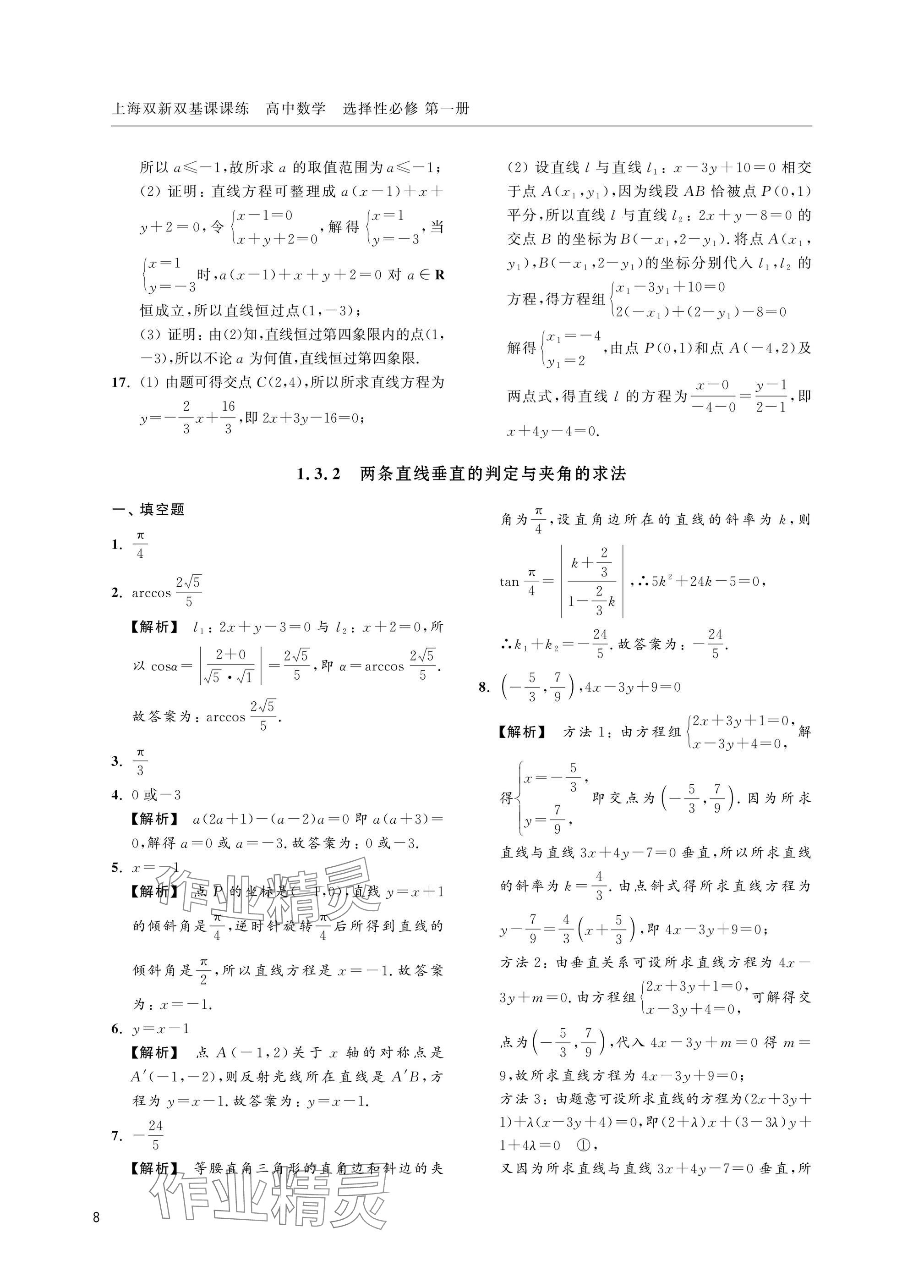 注:目前有些书本章节名称可能整理的还不是很完善,但都是按照顺序排列的,请同学们按照顺序仔细查找。练习册 2025年上海双新双基课课练高中数学选择性必修一沪教版 答案主要是用来给同学们做完题方便对答案用的,请勿直接抄袭。