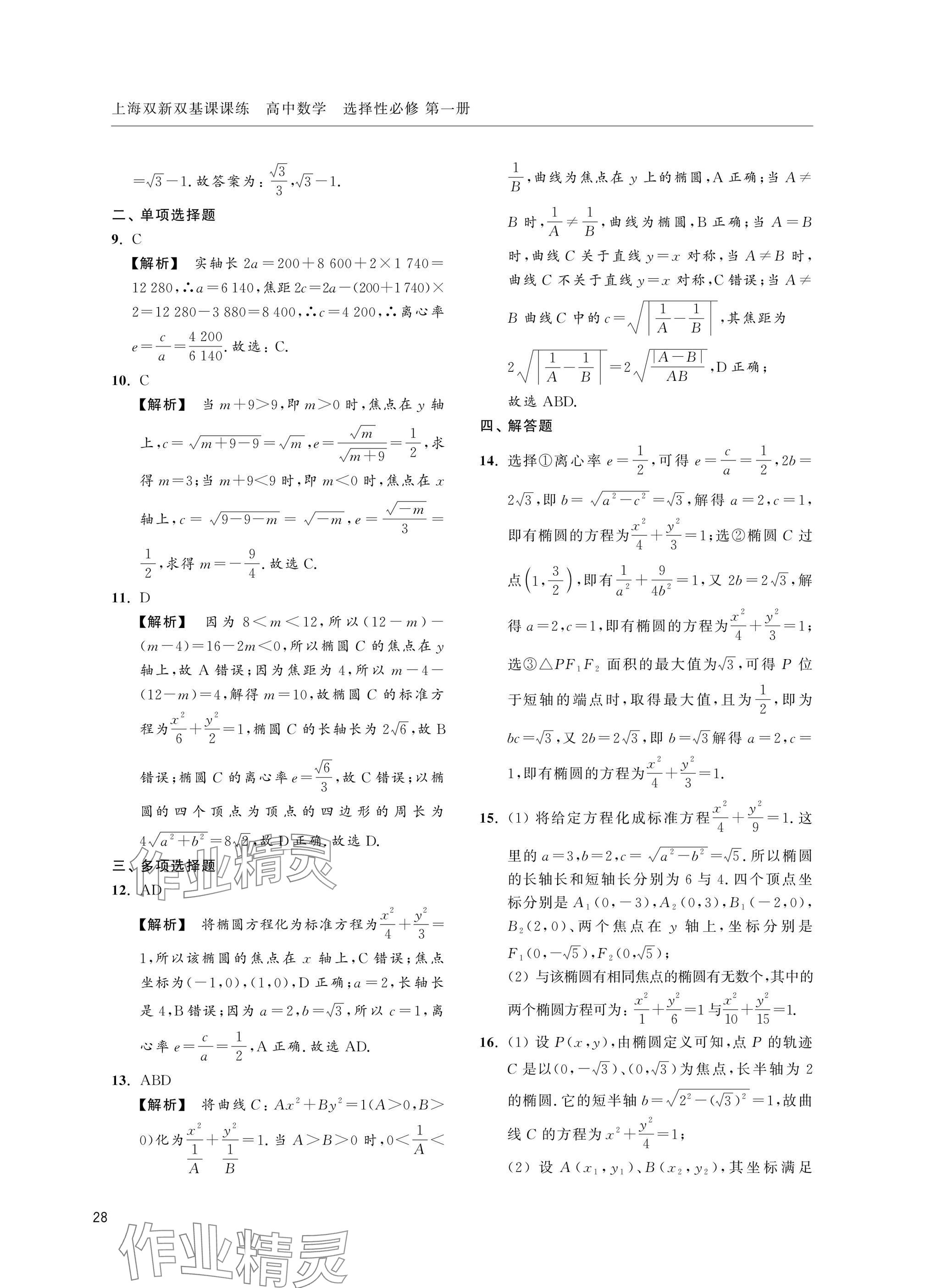 注:目前有些书本章节名称可能整理的还不是很完善,但都是按照顺序排列的,请同学们按照顺序仔细查找。练习册 2025年上海双新双基课课练高中数学选择性必修一沪教版 答案主要是用来给同学们做完题方便对答案用的,请勿直接抄袭。