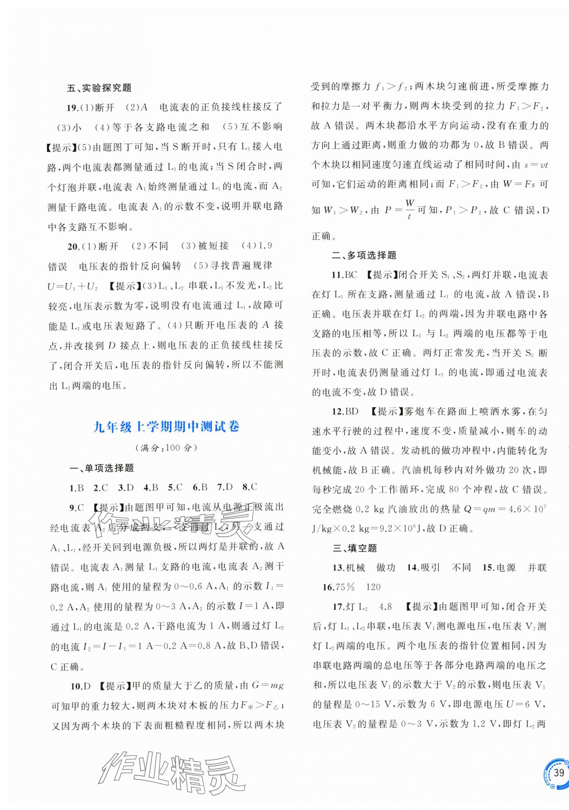 注:目前有些书本章节名称可能整理的还不是很完善,但都是按照顺序排列的,请同学们按照顺序仔细查找。练习册 2025年新课程学习与测评单元双测九年级物理全一册沪粤版 答案主要是用来给同学们做完题方便对答案用的,请勿直接抄袭。
