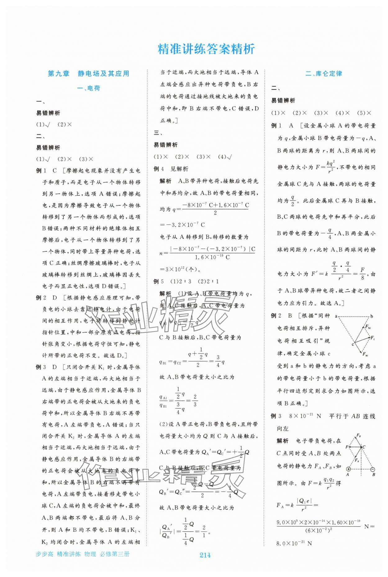 注:目前有些书本章节名称可能整理的还不是很完善,但都是按照顺序排列的,请同学们按照顺序仔细查找。练习册 2025年步步高精准讲练高中物理必修第三册人教版 答案主要是用来给同学们做完题方便对答案用的,请勿直接抄袭。