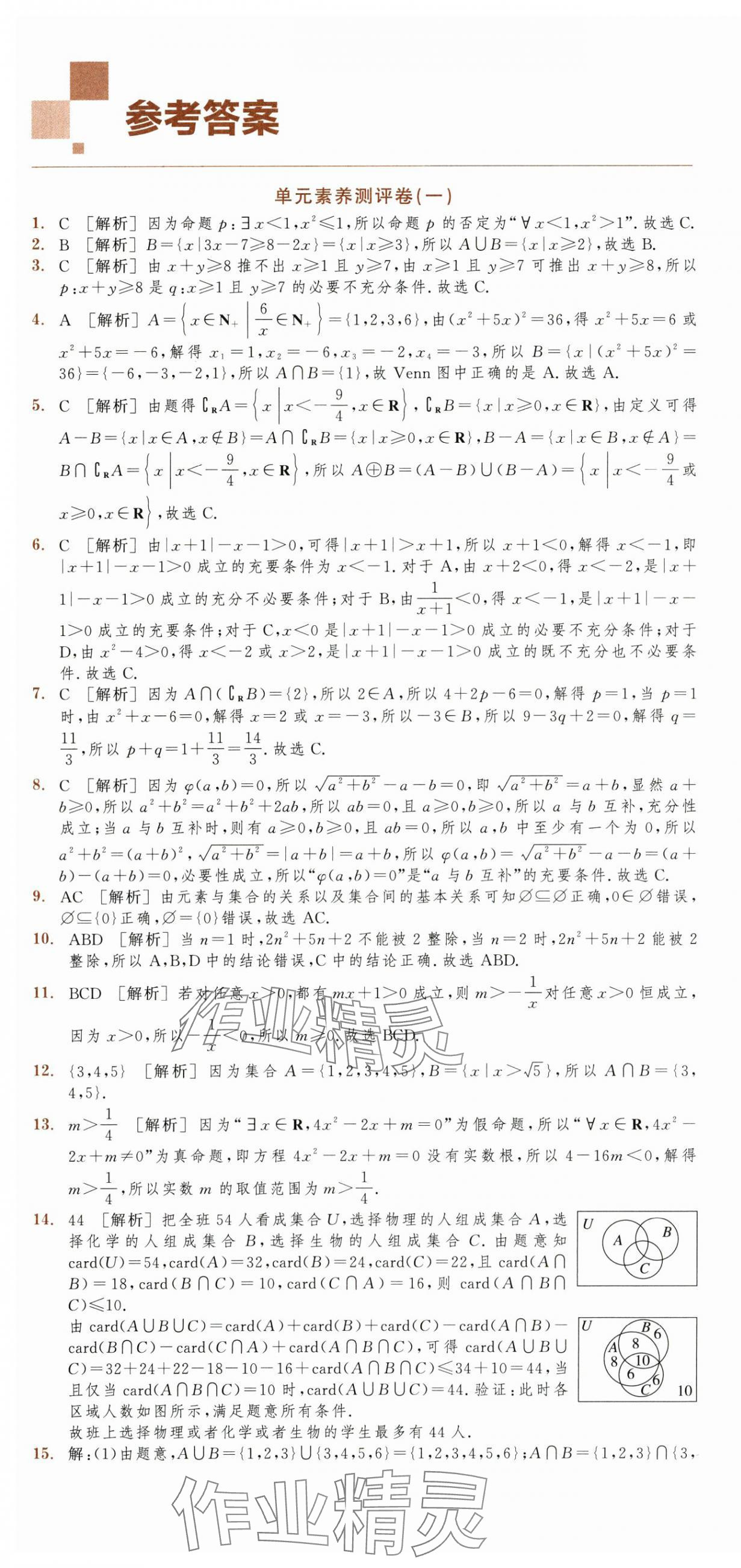 注:目前有些书本章节名称可能整理的还不是很完善,但都是按照顺序排列的,请同学们按照顺序仔细查找。练习册 2025年全品智能作业高中数学必修第一册人教版浙江专版 答案主要是用来给同学们做完题方便对答案用的,请勿直接抄袭。