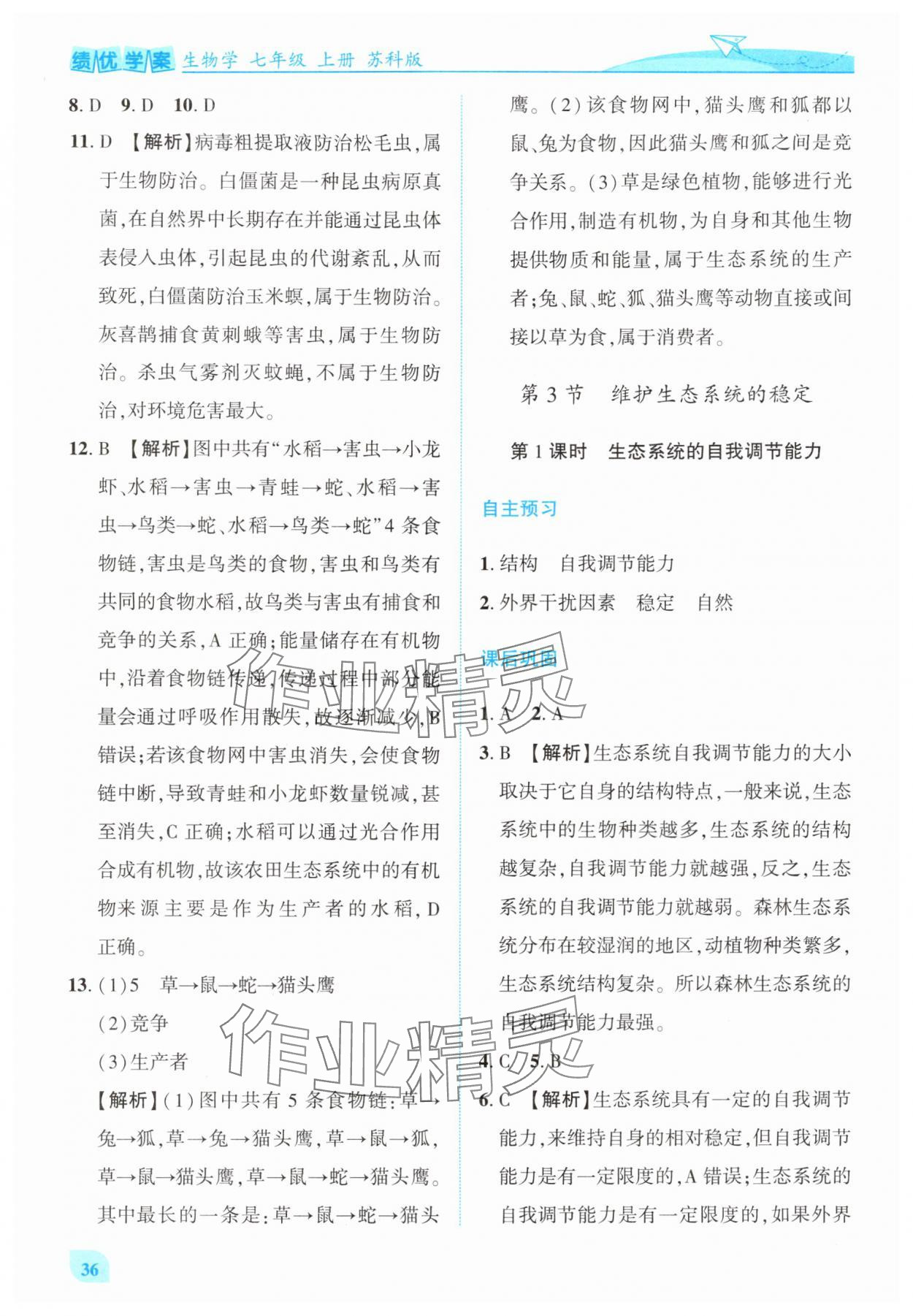 注:目前有些书本章节名称可能整理的还不是很完善,但都是按照顺序排列的,请同学们按照顺序仔细查找。练习册 2025年绩优学案七年级生物上册苏科版 答案主要是用来给同学们做完题方便对答案用的,请勿直接抄袭。