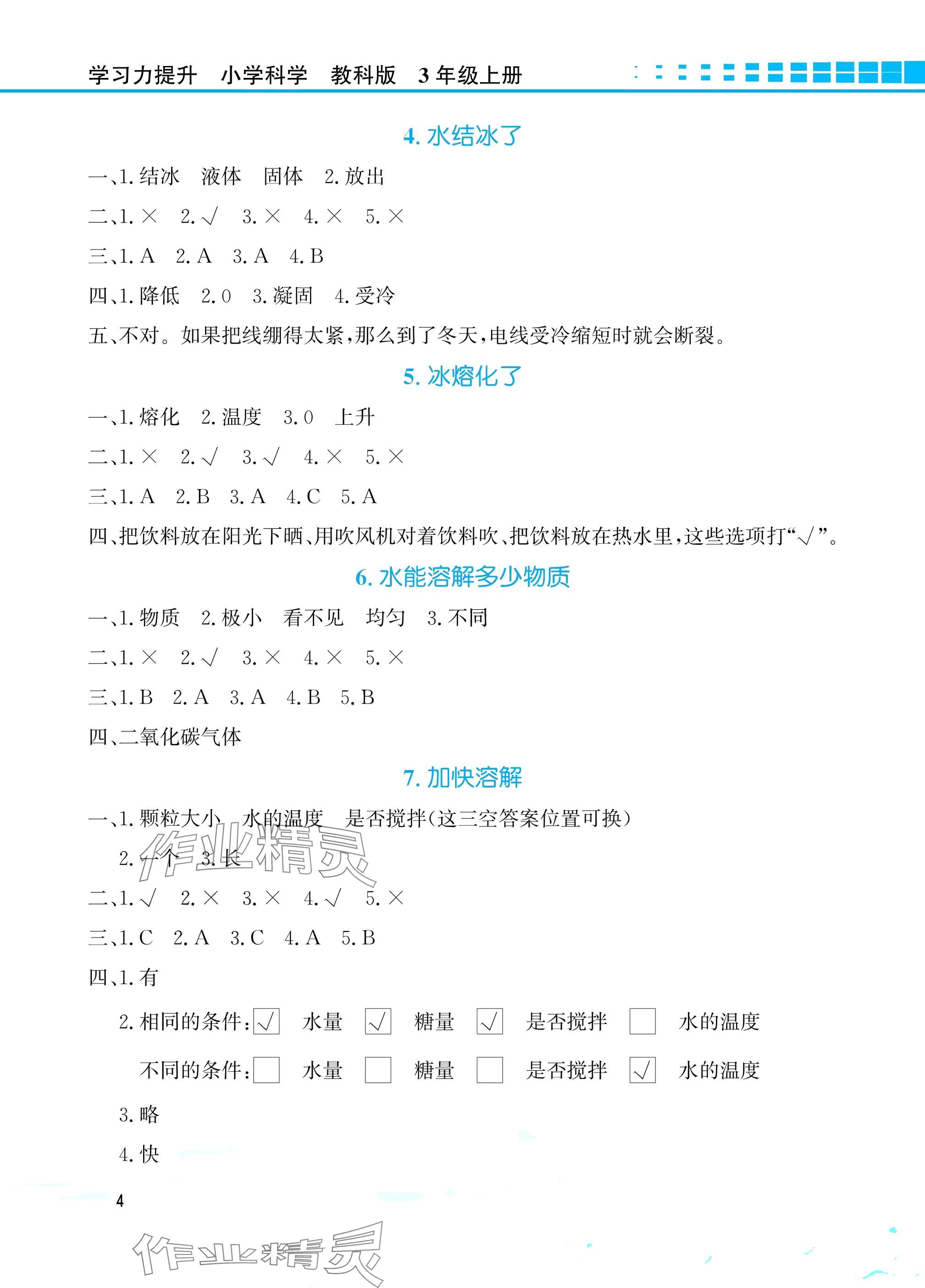 注:目前有些书本章节名称可能整理的还不是很完善,但都是按照顺序排列的,请同学们按照顺序仔细查找。练习册 2025年学习力提升三年级科学上册教科版 答案主要是用来给同学们做完题方便对答案用的,请勿直接抄袭。