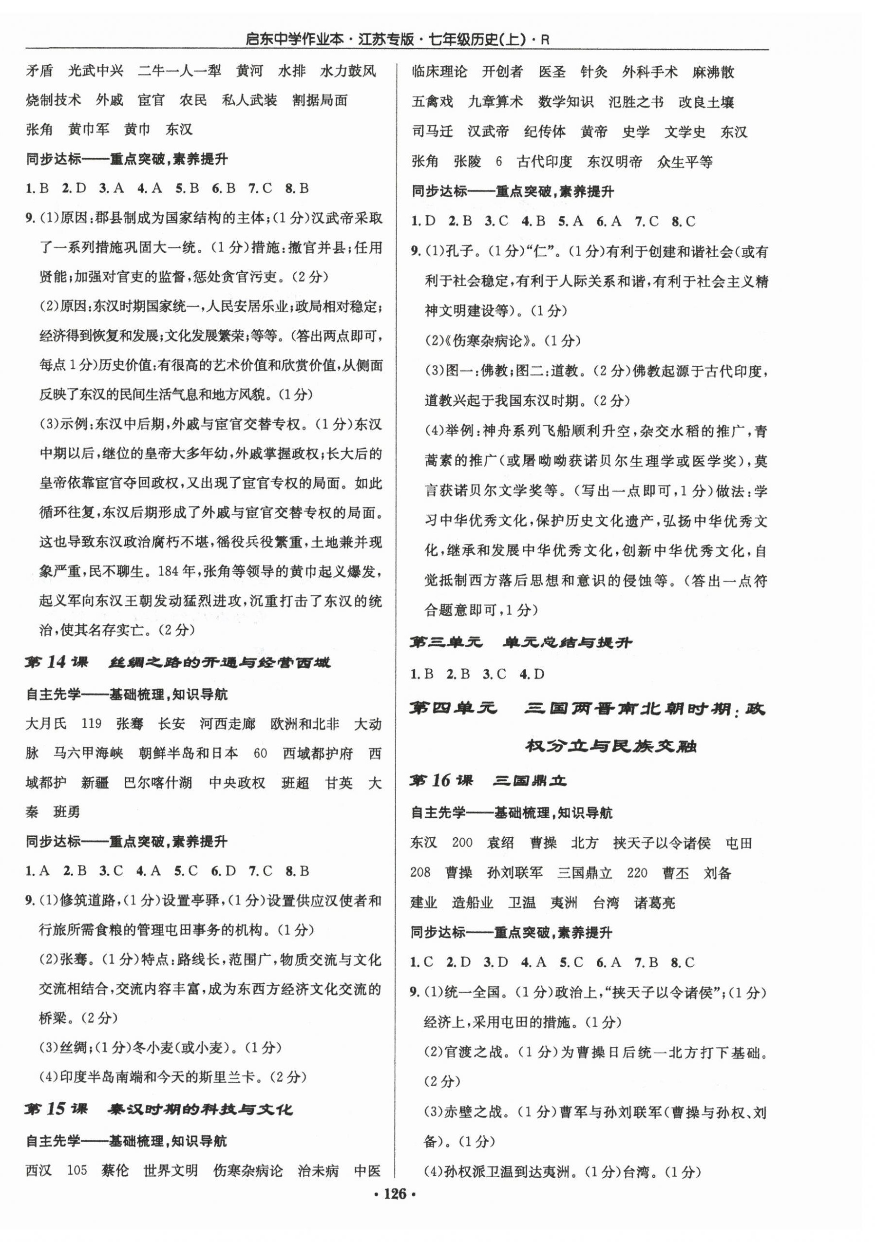 注:目前有些书本章节名称可能整理的还不是很完善,但都是按照顺序排列的,请同学们按照顺序仔细查找。练习册 2025年启东中学作业本七年级历史上册人教版宿迁专版 答案主要是用来给同学们做完题方便对答案用的,请勿直接抄袭。