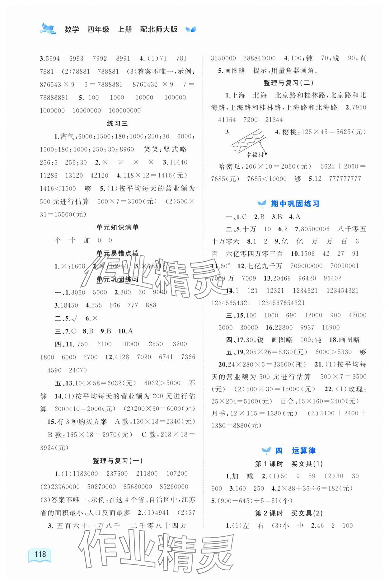 注:目前有些书本章节名称可能整理的还不是很完善,但都是按照顺序排列的,请同学们按照顺序仔细查找。练习册 2025年新课程学习与测评同步学习四年级数学上册北师大版 答案主要是用来给同学们做完题方便对答案用的,请勿直接抄袭。