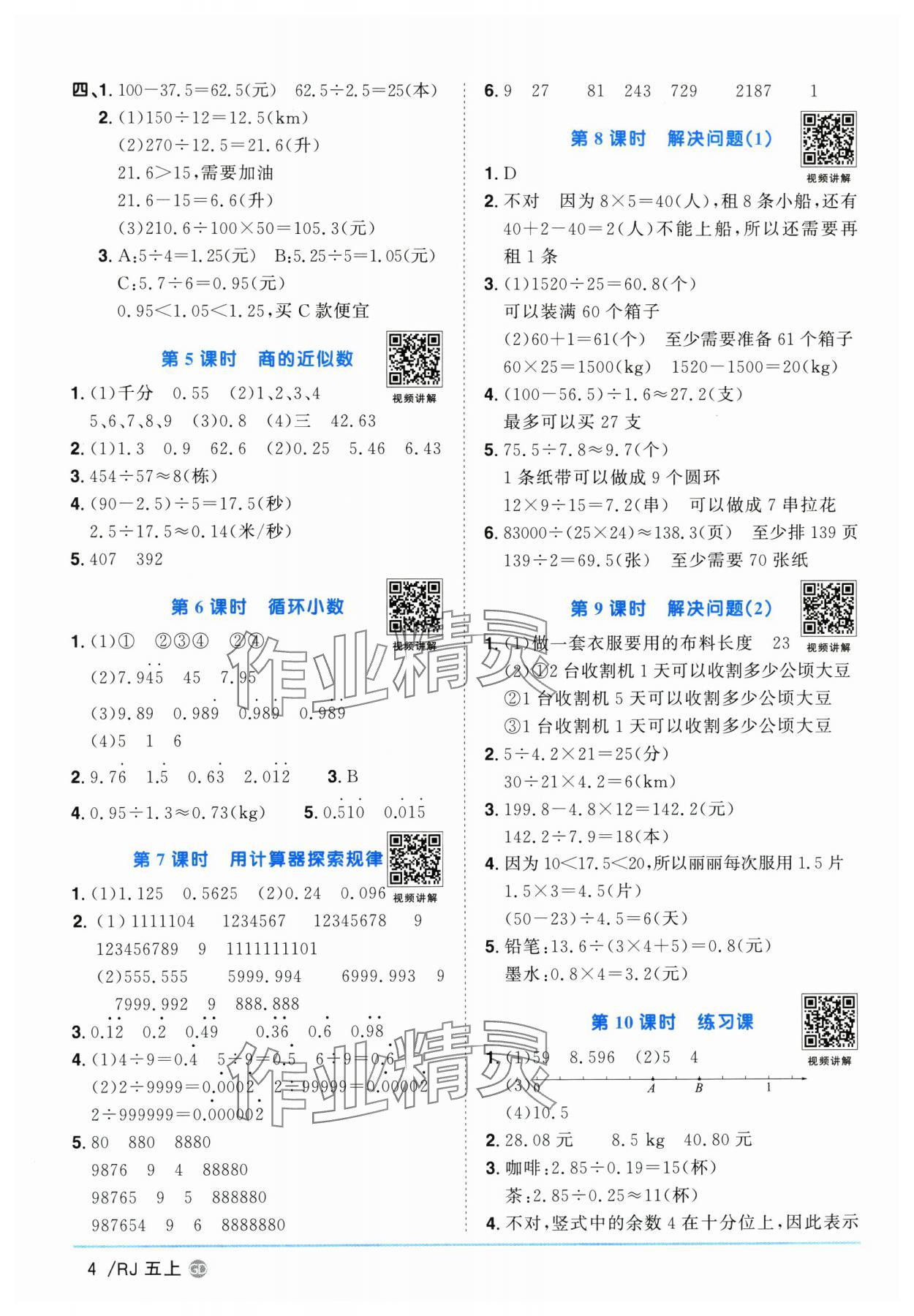 精英家教网> 2025年阳光同学课时优化作业五年级数学上册人教版广东专版 > 第4页 参考答案