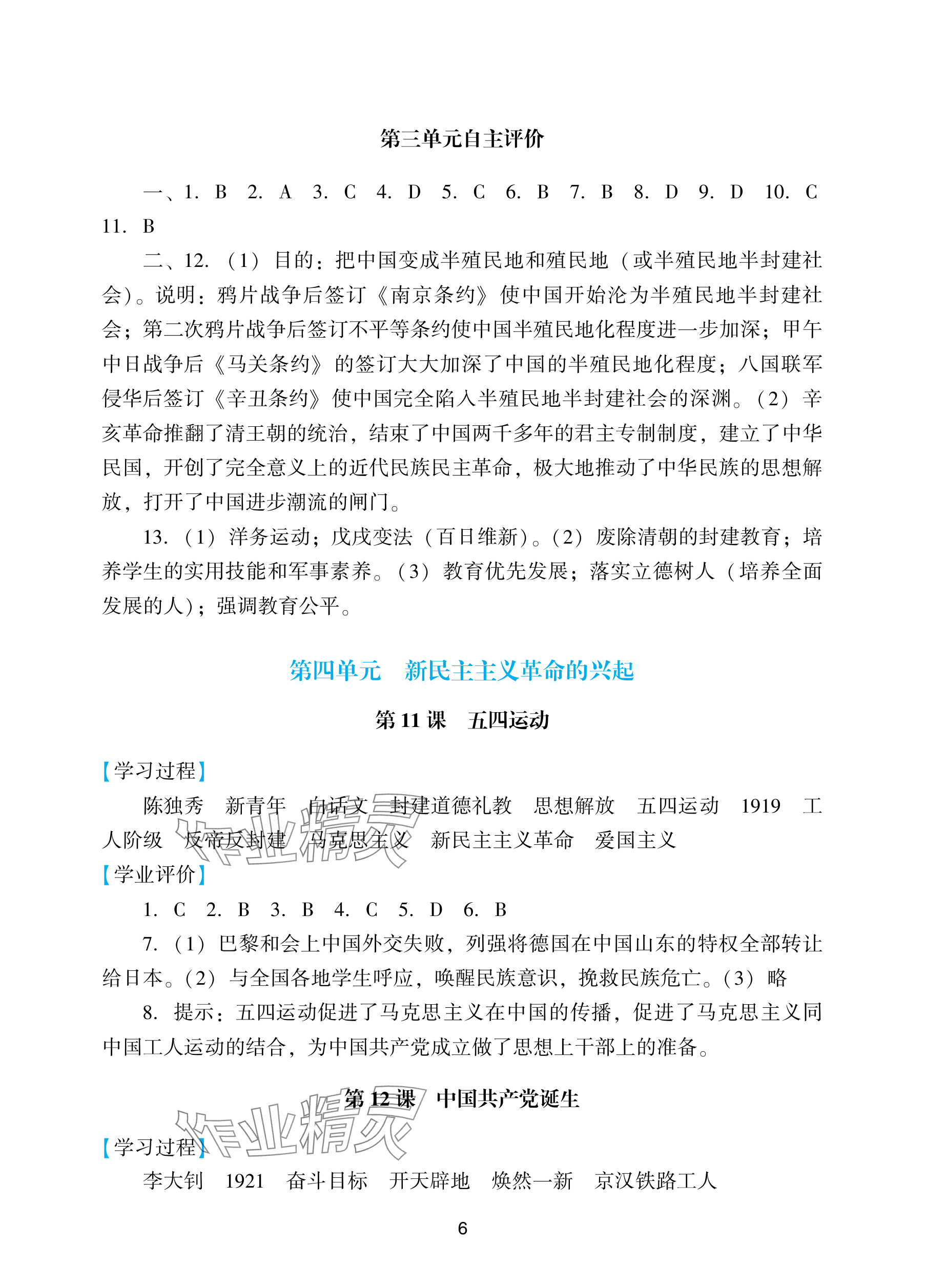 注:目前有些书本章节名称可能整理的还不是很完善,但都是按照顺序排列的,请同学们按照顺序仔细查找。练习册 2025年阳光学业评价八年级历史上册人教版 答案主要是用来给同学们做完题方便对答案用的,请勿直接抄袭。