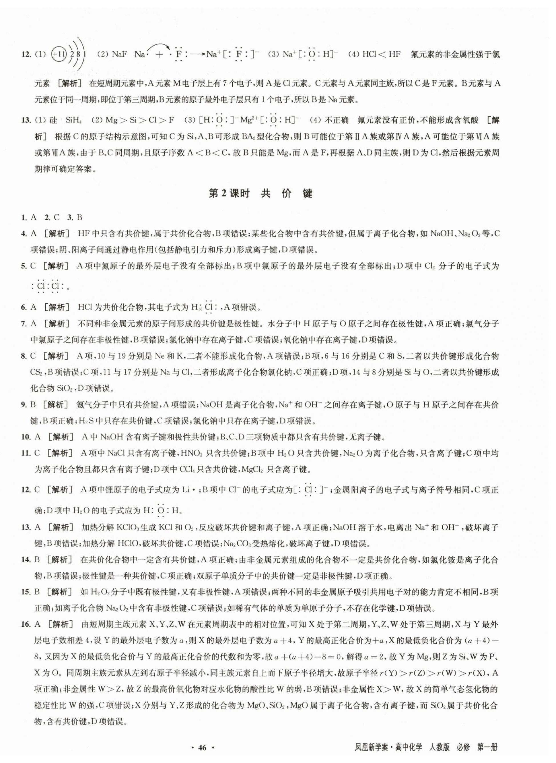 注:目前有些书本章节名称可能整理的还不是很完善,但都是按照顺序排列的,请同学们按照顺序仔细查找。练习册 2025年凤凰新学案高中化学必修第一册人教版 答案主要是用来给同学们做完题方便对答案用的,请勿直接抄袭。