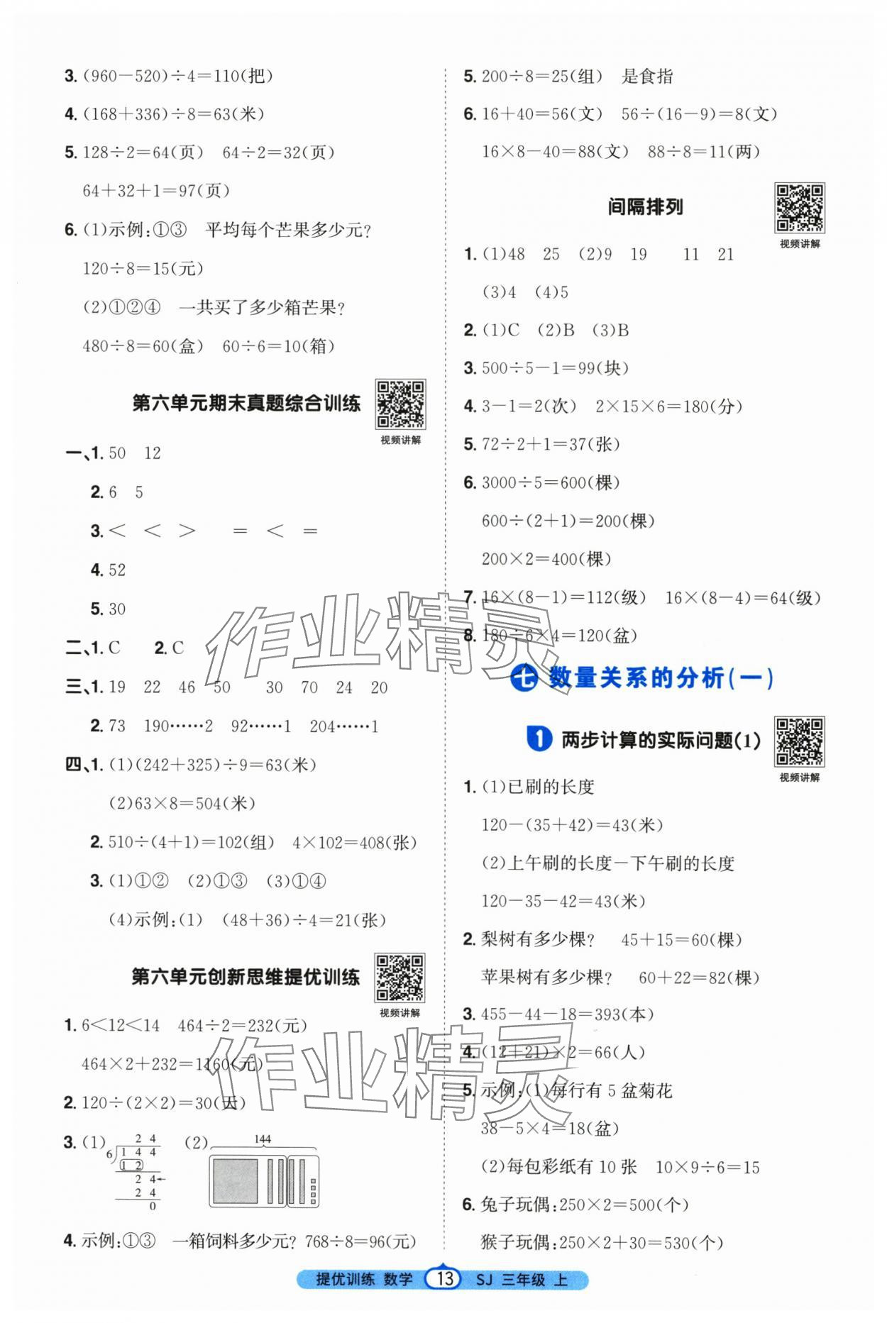 注:目前有些书本章节名称可能整理的还不是很完善,但都是按照顺序排列的,请同学们按照顺序仔细查找。练习册 2025年阳光同学课时提优训练三年级数学上册苏教版 答案主要是用来给同学们做完题方便对答案用的,请勿直接抄袭。
