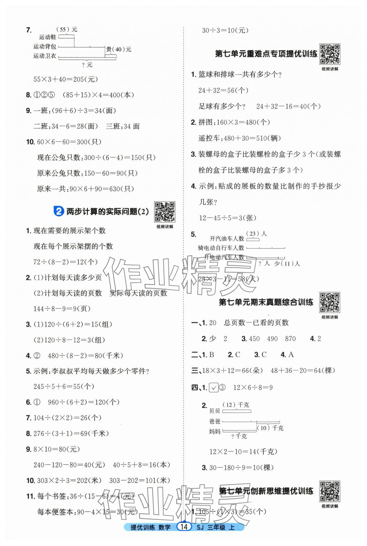 注:目前有些书本章节名称可能整理的还不是很完善,但都是按照顺序排列的,请同学们按照顺序仔细查找。练习册 2025年阳光同学课时提优训练三年级数学上册苏教版 答案主要是用来给同学们做完题方便对答案用的,请勿直接抄袭。