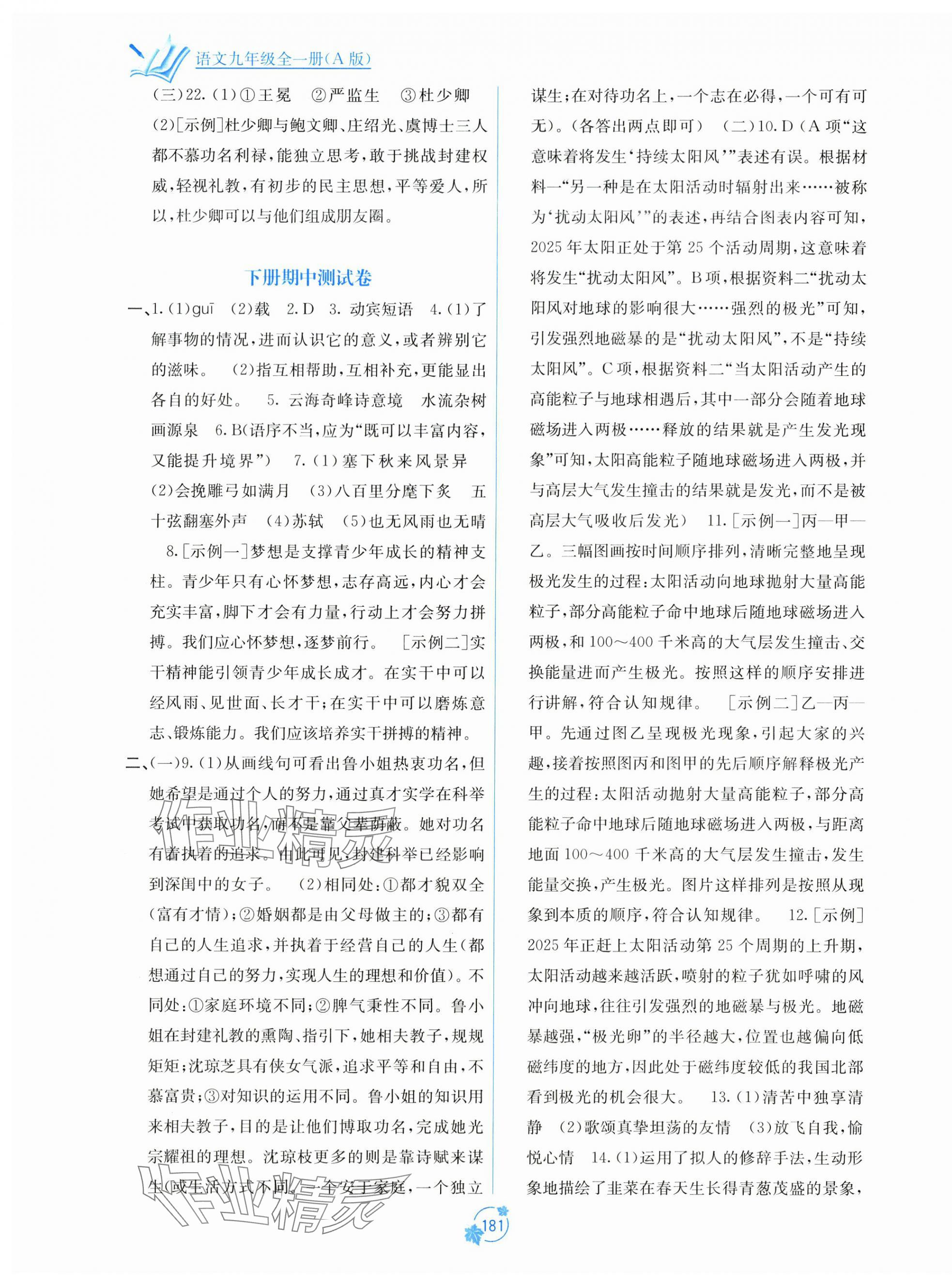 注:目前有些书本章节名称可能整理的还不是很完善,但都是按照顺序排列的,请同学们按照顺序仔细查找。练习册 2025年自主学习能力测评单元测试九年级语文全一册人教版 答案主要是用来给同学们做完题方便对答案用的,请勿直接抄袭。
