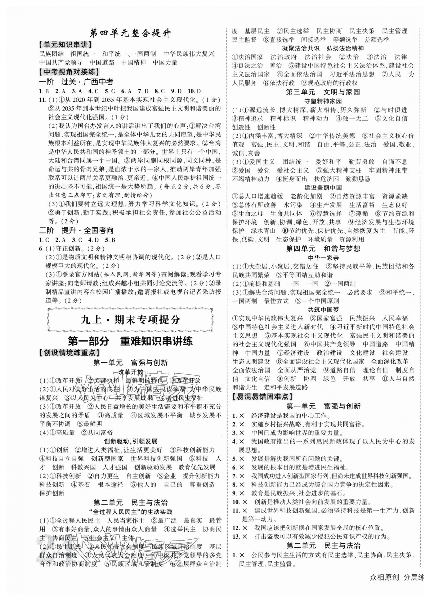注:目前有些书本章节名称可能整理的还不是很完善,但都是按照顺序排列的,请同学们按照顺序仔细查找。练习册 2025年众相原创分层练九年级道德与法治全一册人教版广西专版 答案主要是用来给同学们做完题方便对答案用的,请勿直接抄袭。
