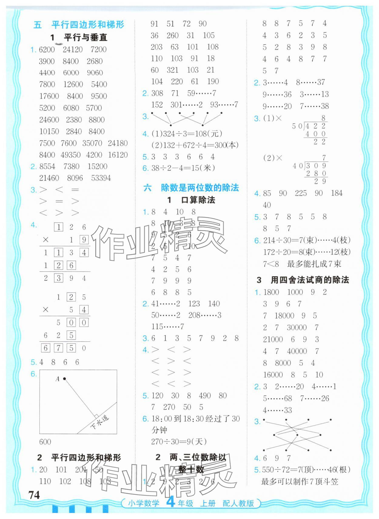 注:目前有些书本章节名称可能整理的还不是很完善,但都是按照顺序排列的,请同学们按照顺序仔细查找。练习册 2025年活页计算四年级数学上册人教版 答案主要是用来给同学们做完题方便对答案用的,请勿直接抄袭。