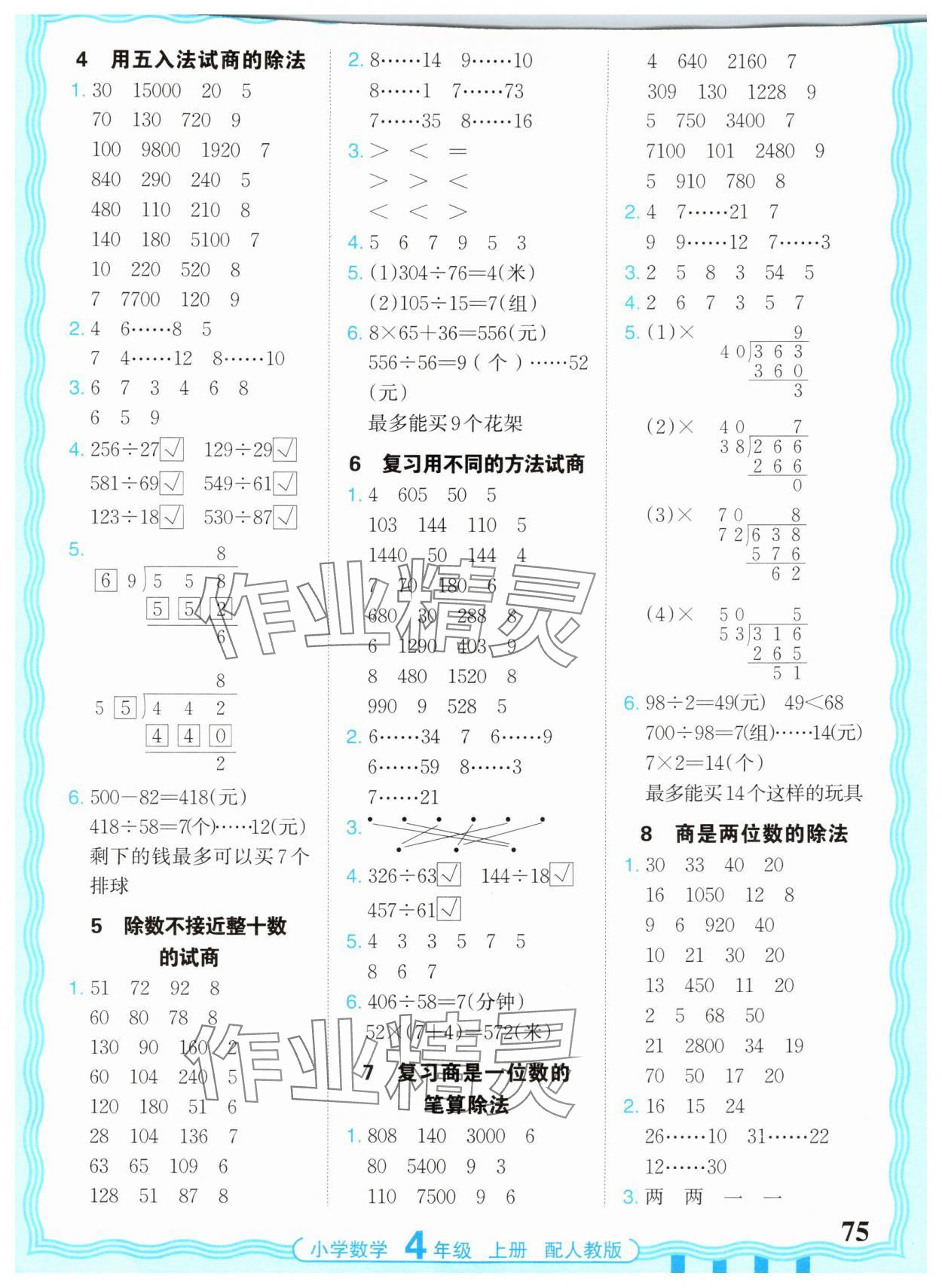 注:目前有些书本章节名称可能整理的还不是很完善,但都是按照顺序排列的,请同学们按照顺序仔细查找。练习册 2025年活页计算四年级数学上册人教版 答案主要是用来给同学们做完题方便对答案用的,请勿直接抄袭。