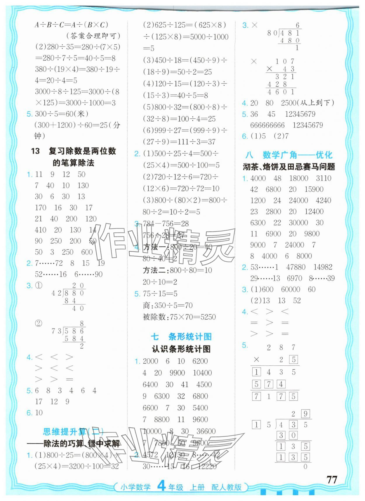 注:目前有些书本章节名称可能整理的还不是很完善,但都是按照顺序排列的,请同学们按照顺序仔细查找。练习册 2025年活页计算四年级数学上册人教版 答案主要是用来给同学们做完题方便对答案用的,请勿直接抄袭。
