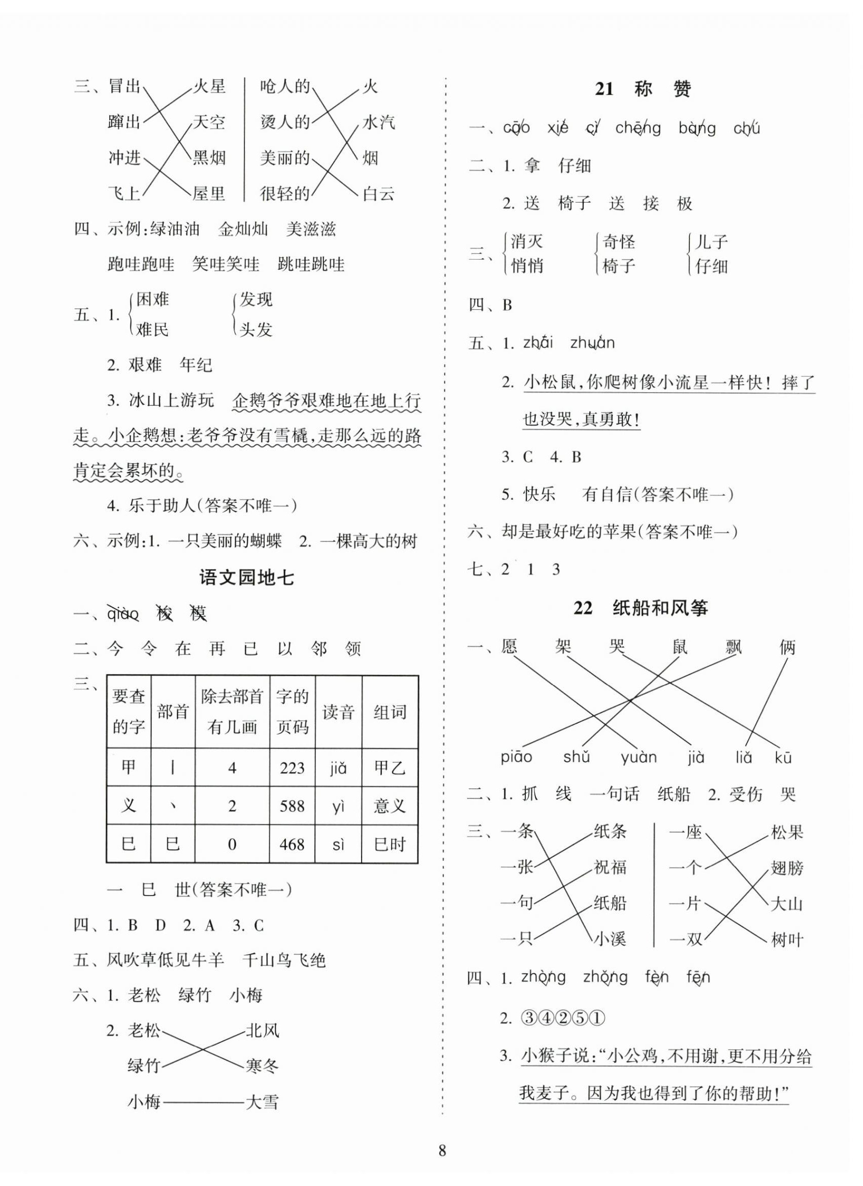注:目前有些书本章节名称可能整理的还不是很完善,但都是按照顺序排列的,请同学们按照顺序仔细查找。练习册 2025年金椰风新课程同步练二年级语文上册人教版 答案主要是用来给同学们做完题方便对答案用的,请勿直接抄袭。