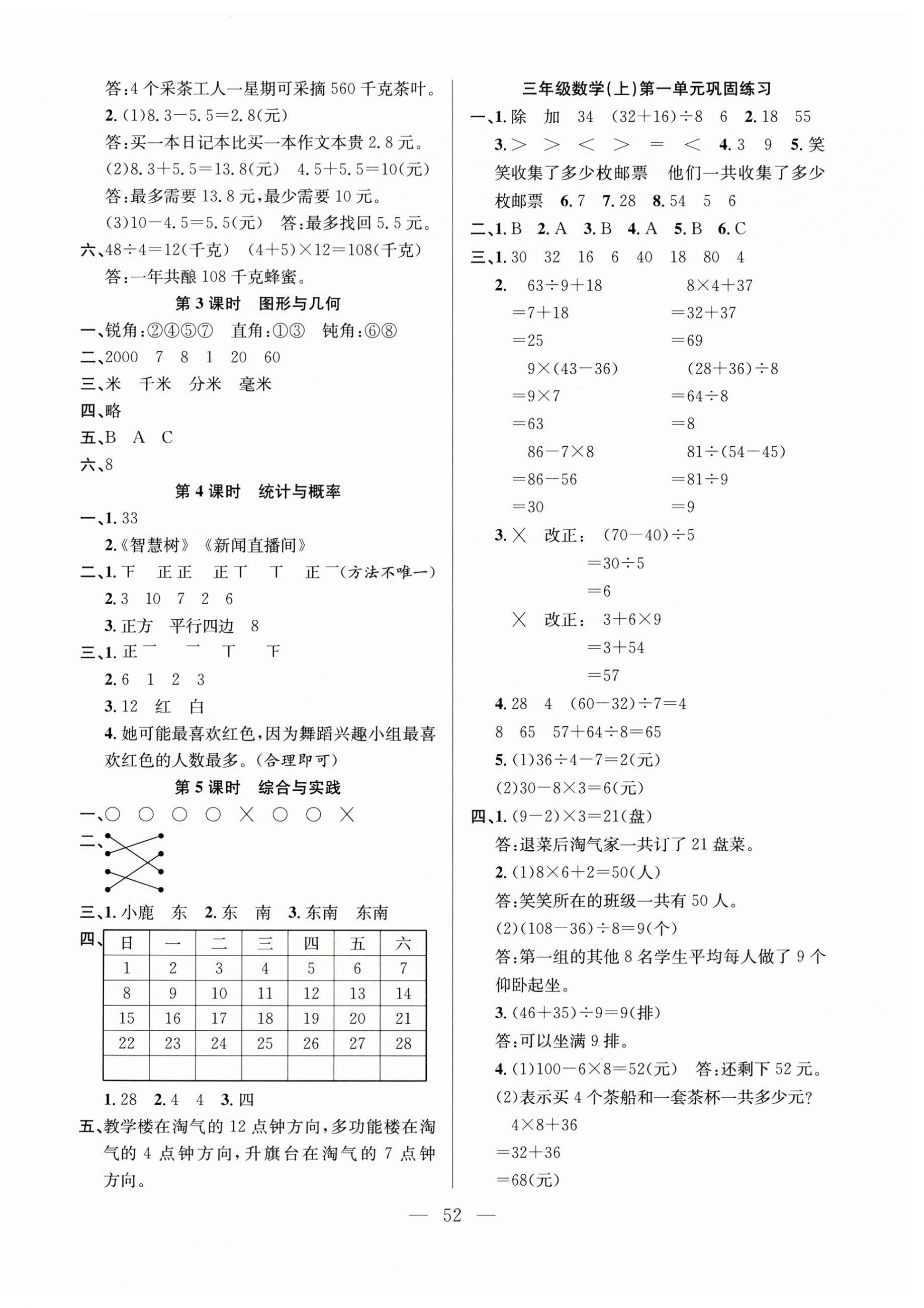 注:目前有些书本章节名称可能整理的还不是很完善,但都是按照顺序排列的,请同学们按照顺序仔细查找。练习册 2025年阳光课堂课时作业三年级数学上册北师大版 答案主要是用来给同学们做完题方便对答案用的,请勿直接抄袭。