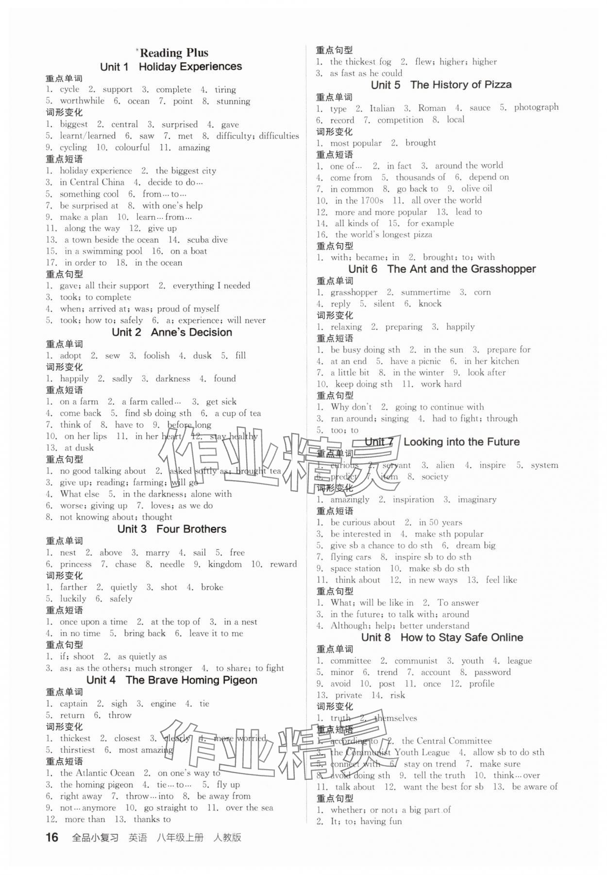 2025年全品小复习八年级英语上册人教版宁夏专版