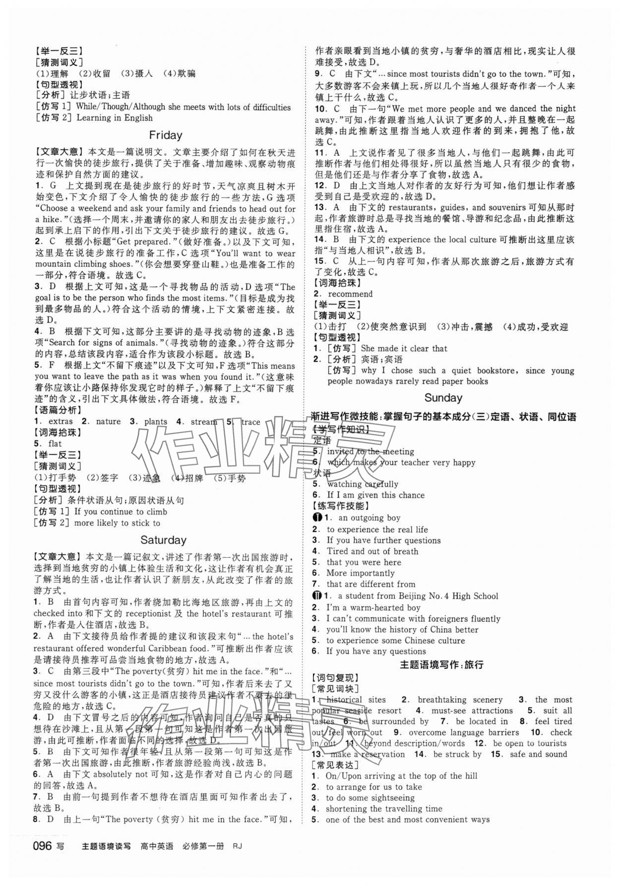 注:目前有些书本章节名称可能整理的还不是很完善,但都是按照顺序排列的,请同学们按照顺序仔细查找。练习册 2025年全品智能作业高中英语必修第一册人教版 答案主要是用来给同学们做完题方便对答案用的,请勿直接抄袭。