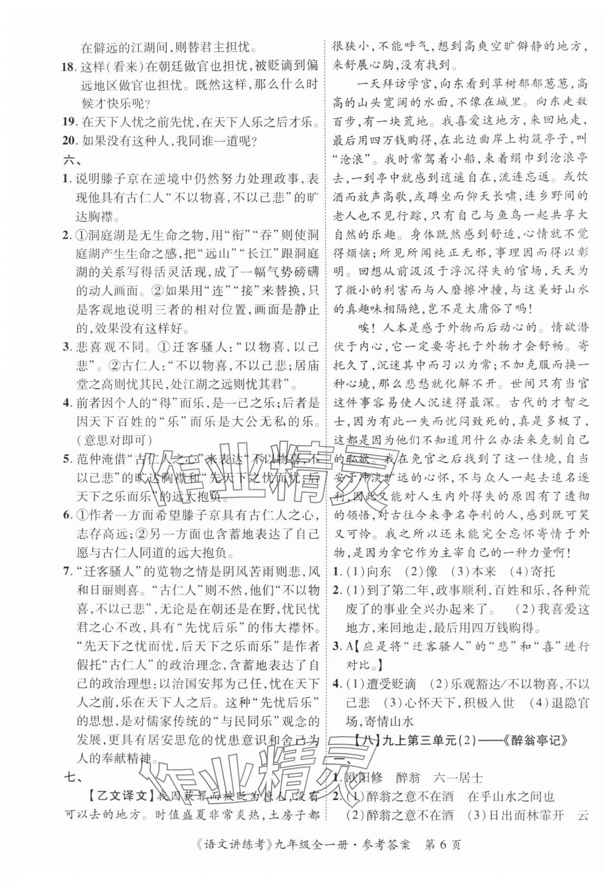 精英家教网> 2025年语文讲练考九年级全一册人教版 > 第6页 参考答案