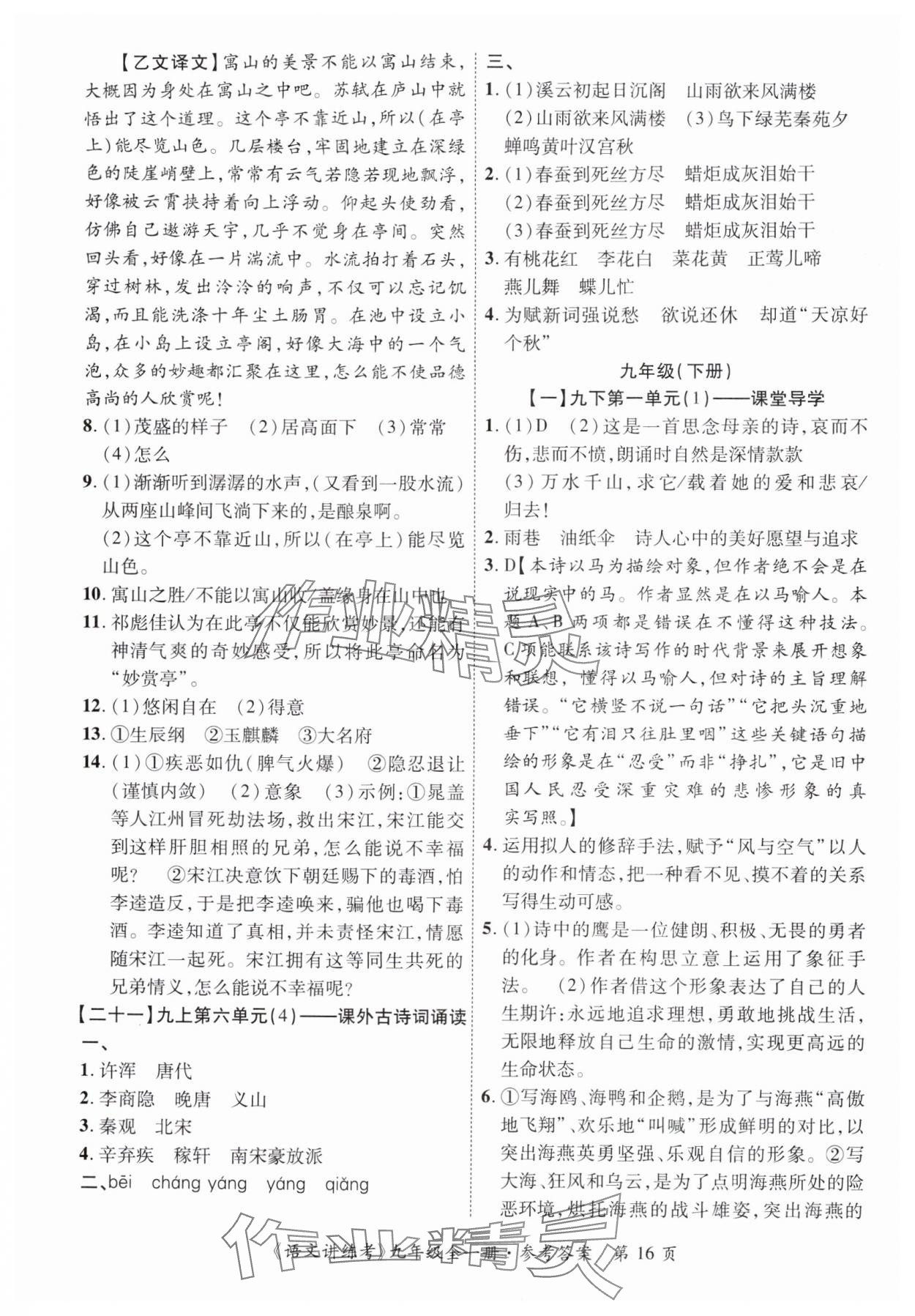 精英家教网> 2025年语文讲练考九年级全一册人教版 > 第16页 参考答案